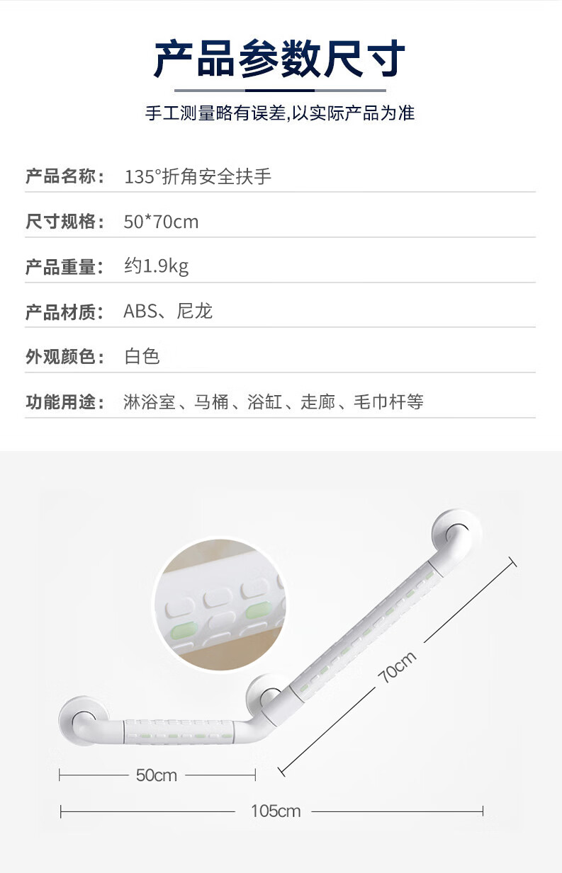 莫顿 135°折角安全无障碍扶手 白50×70cm M-9952-3