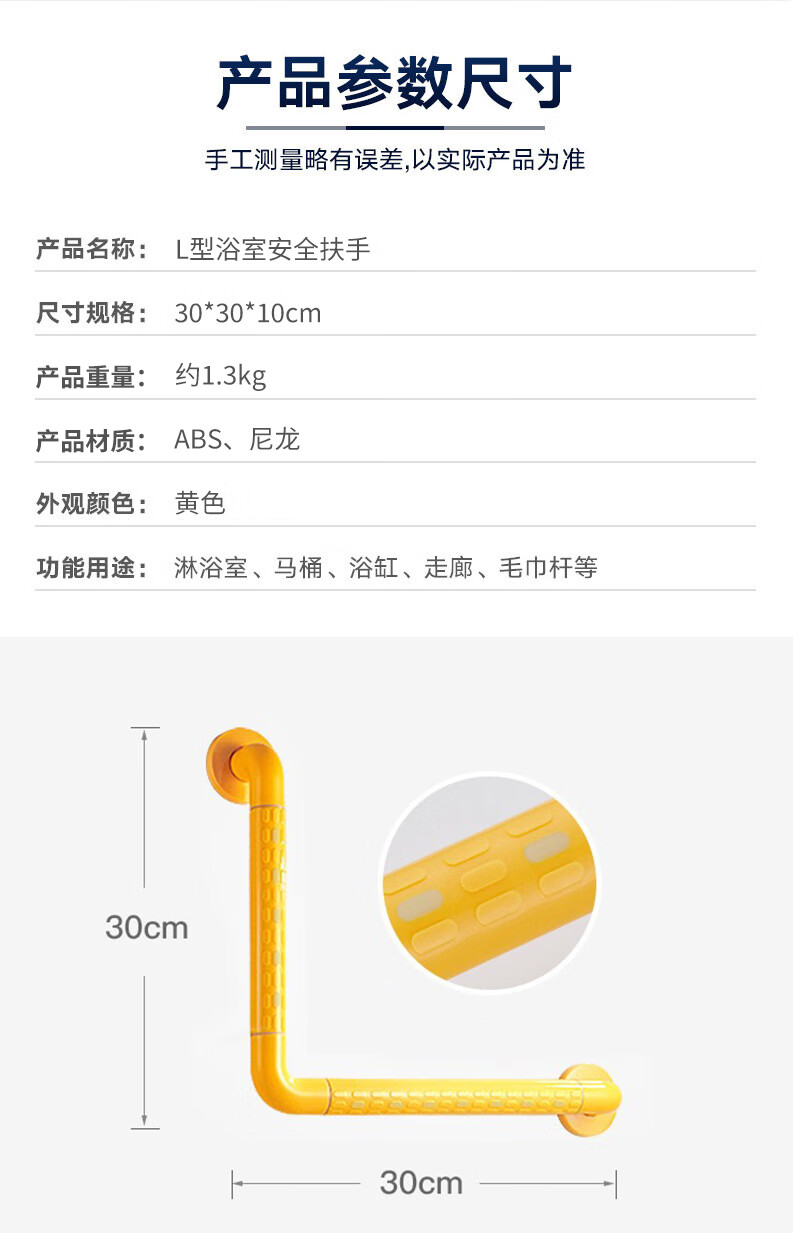 莫顿 L型浴室扶手 黄30x30cm M-9972