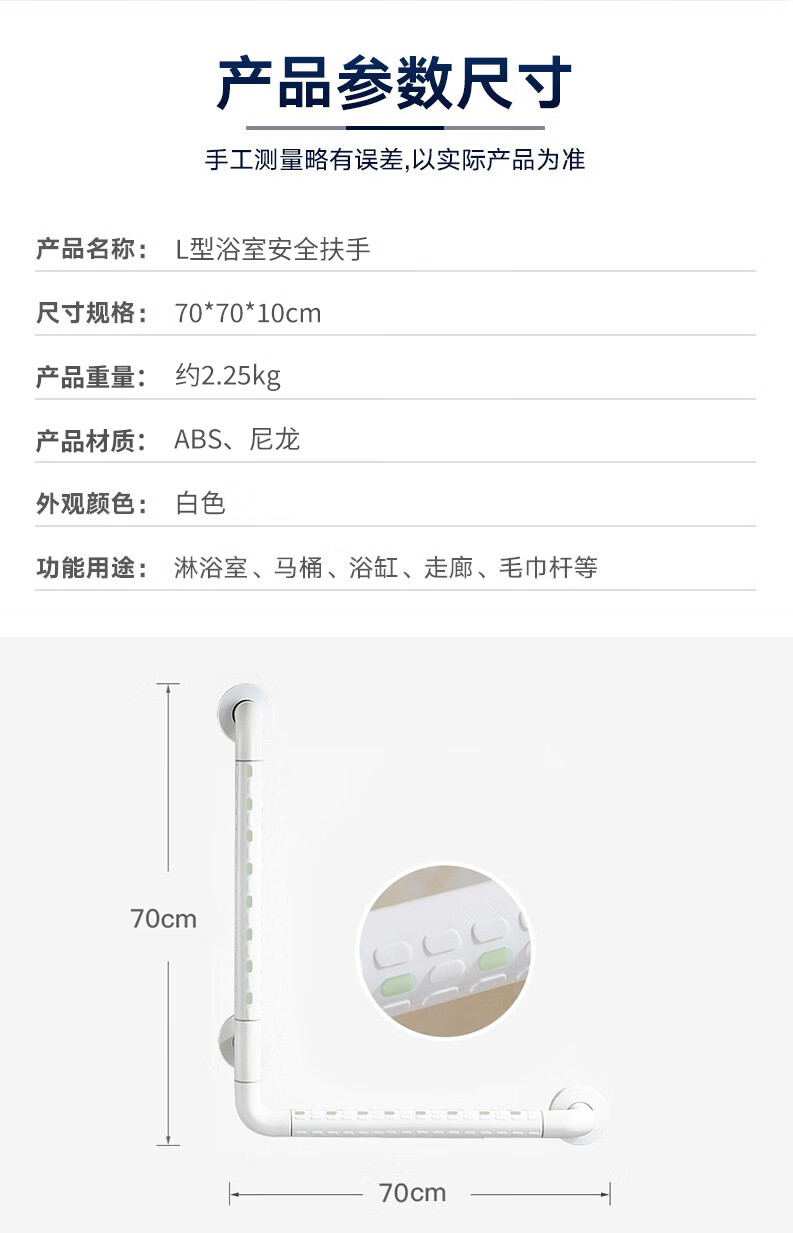 莫顿 L型浴室扶手 白70*70cm M-9908-3