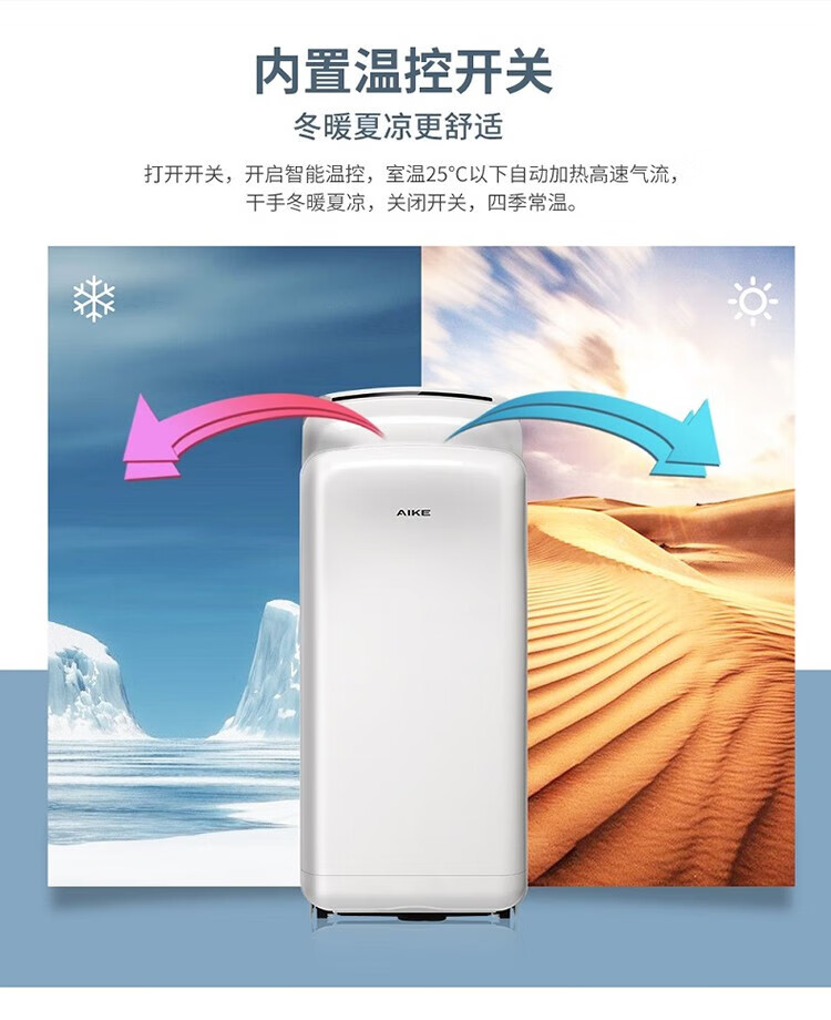 艾克(AIKE)AK2030 干手器烘手机 无刷电机全自动感应食药无菌工厂商场双面干手机烘手器无刷电机/UV杀菌 白色