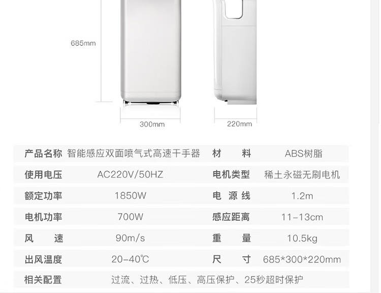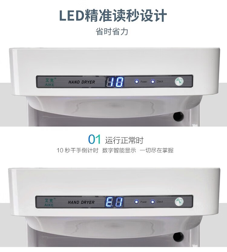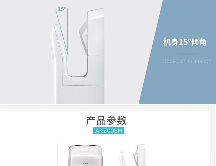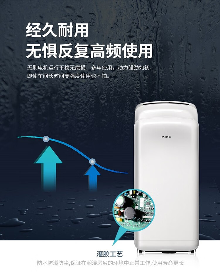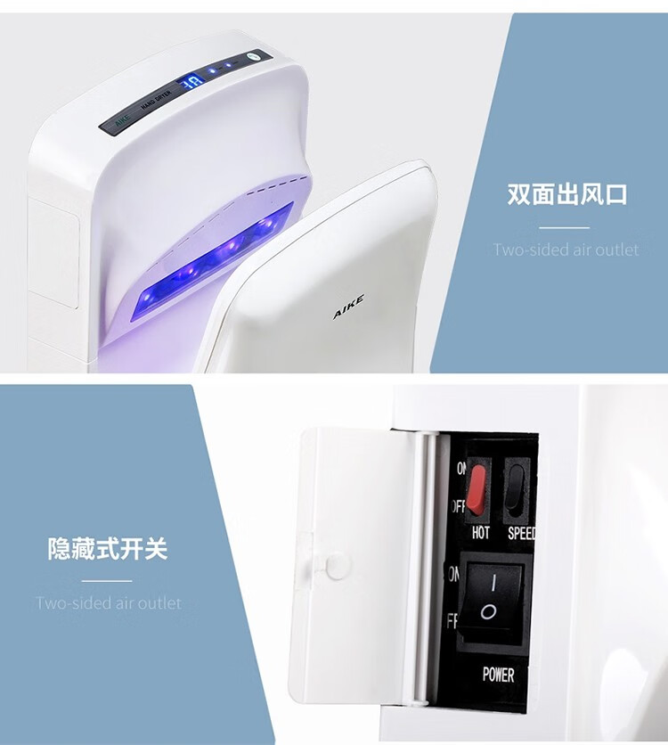 艾克(AIKE)AK2006H 干手器烘手机 无刷电机全自动感应食药工厂商场双面干手机烘手器无刷电机/HEPA滤网 银色