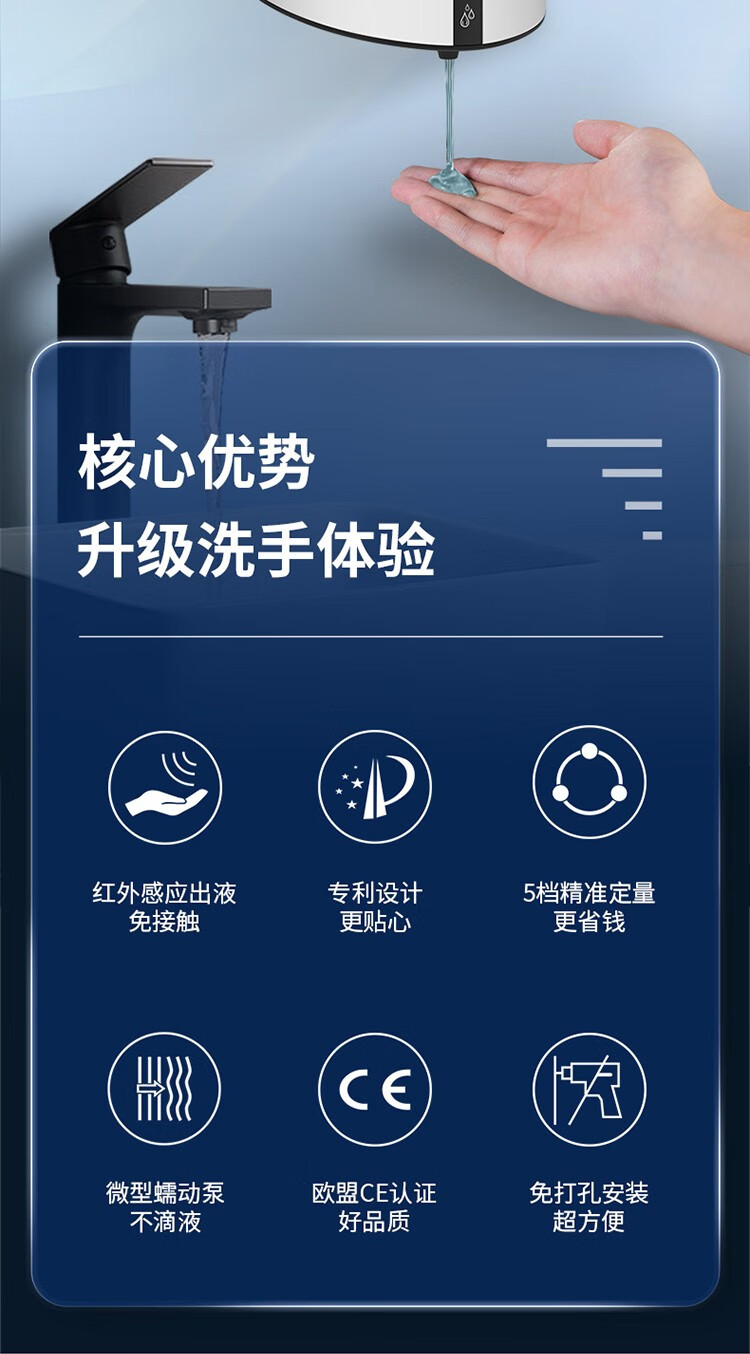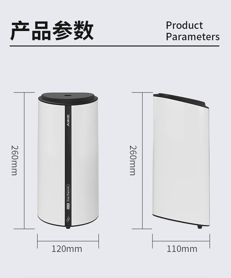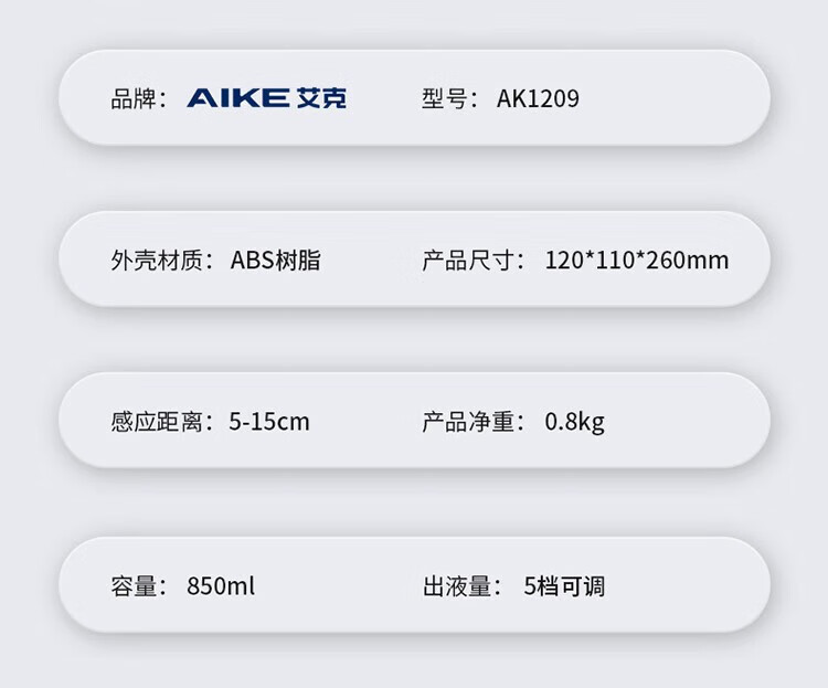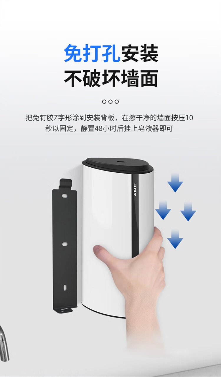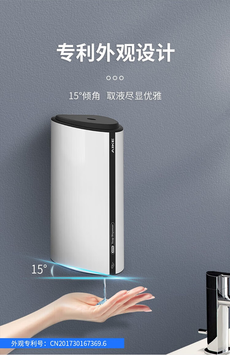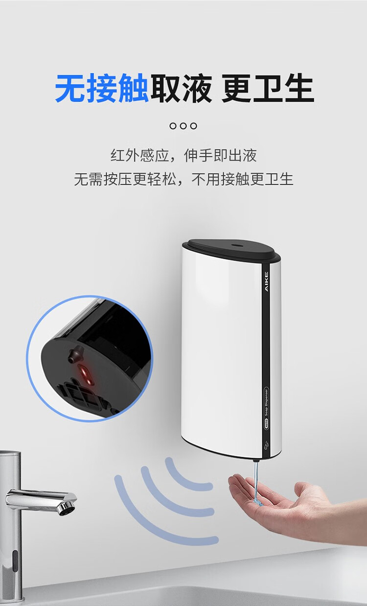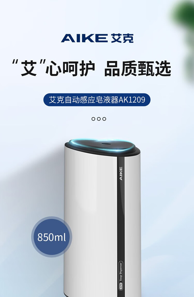 艾克(AIKE)AK1209 感应皂液器洗手液器 宿舍商场卫生间餐厅家商用自动洗手液出液机 免打孔壁挂式 银色