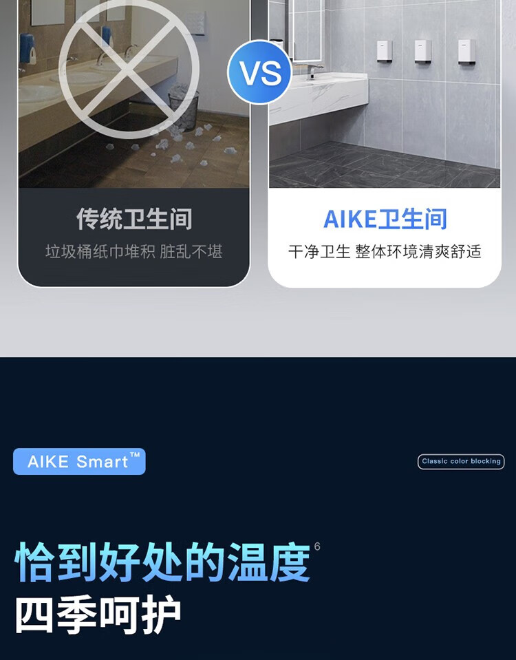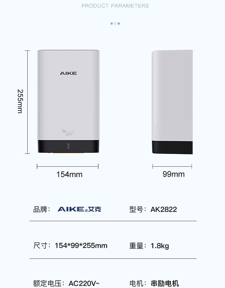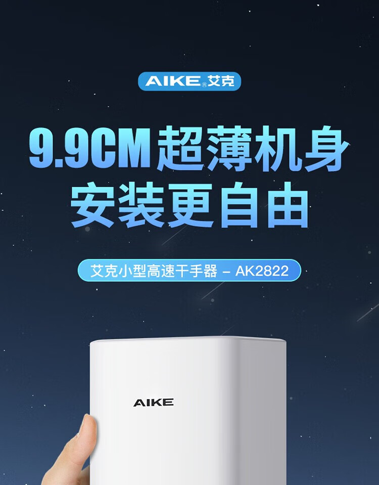 艾克(AIKE)AK2822 高速干手器烘手机 全自动感应写字楼商场家卫生间壁挂式干手机免打孔 银色