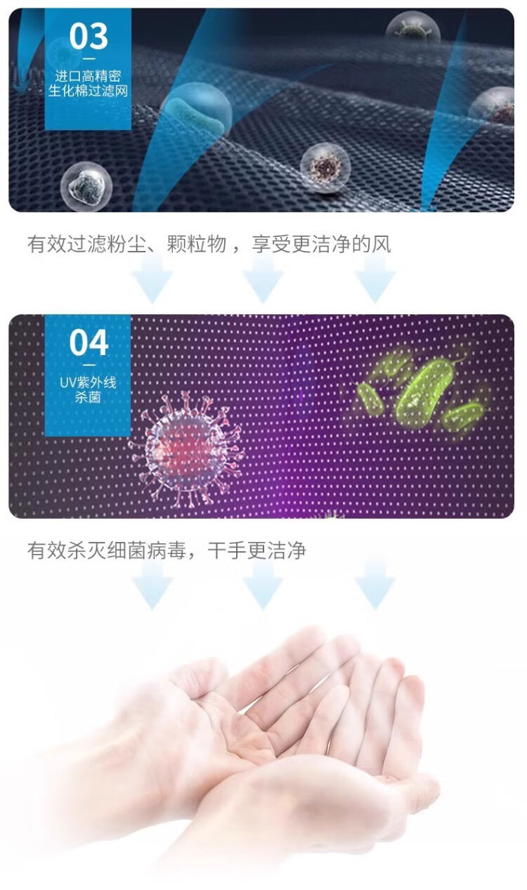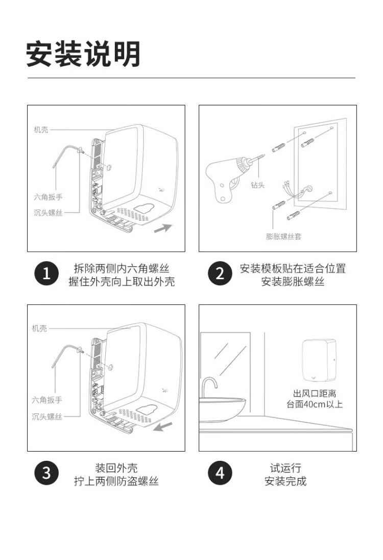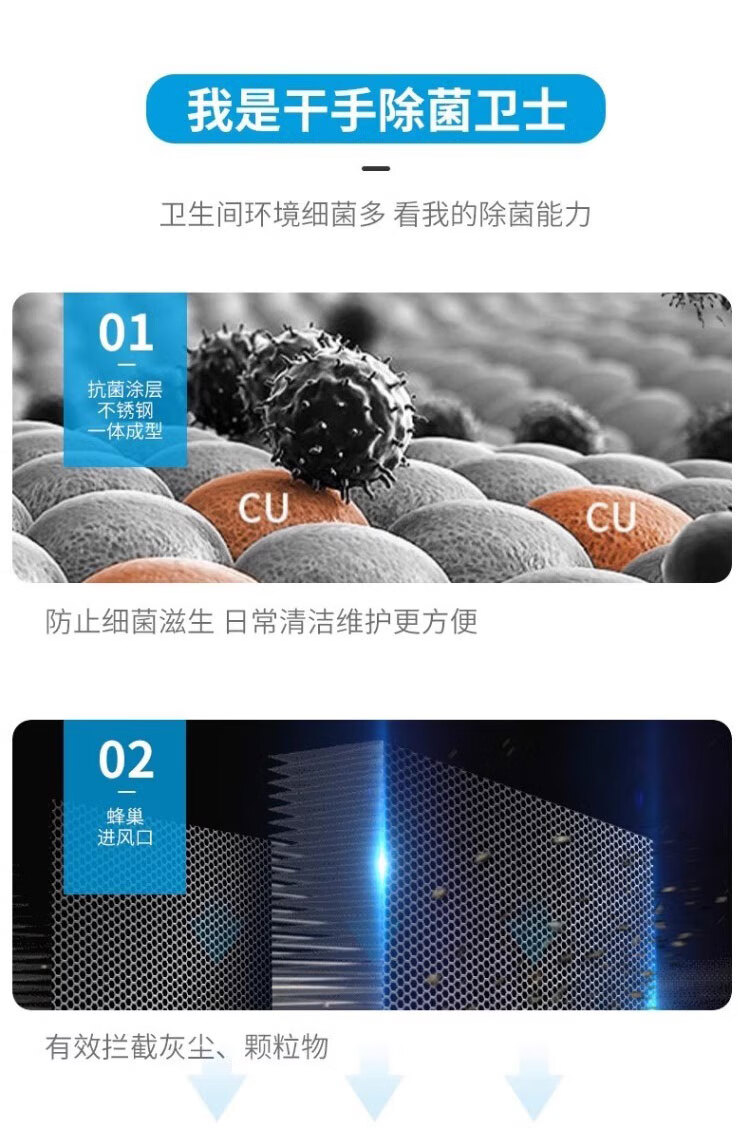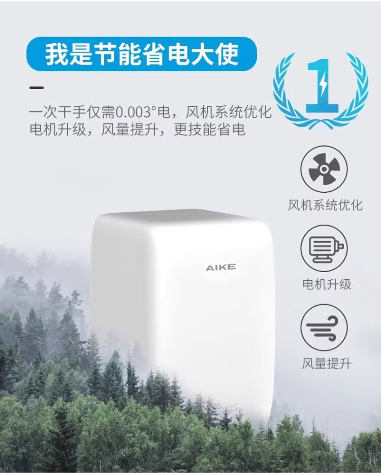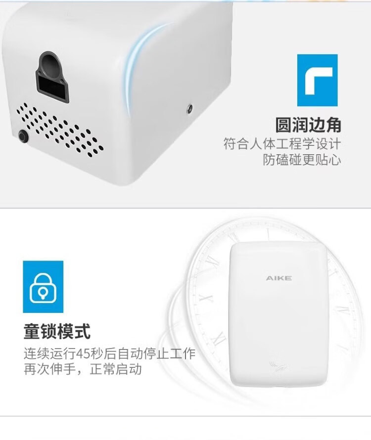 艾克(AIKE)AK2650 干手器烘手机 不锈钢防水 卫生间厨房餐厅干手机 全自动感应吹手烘干手机 小型智能冷热风 白色