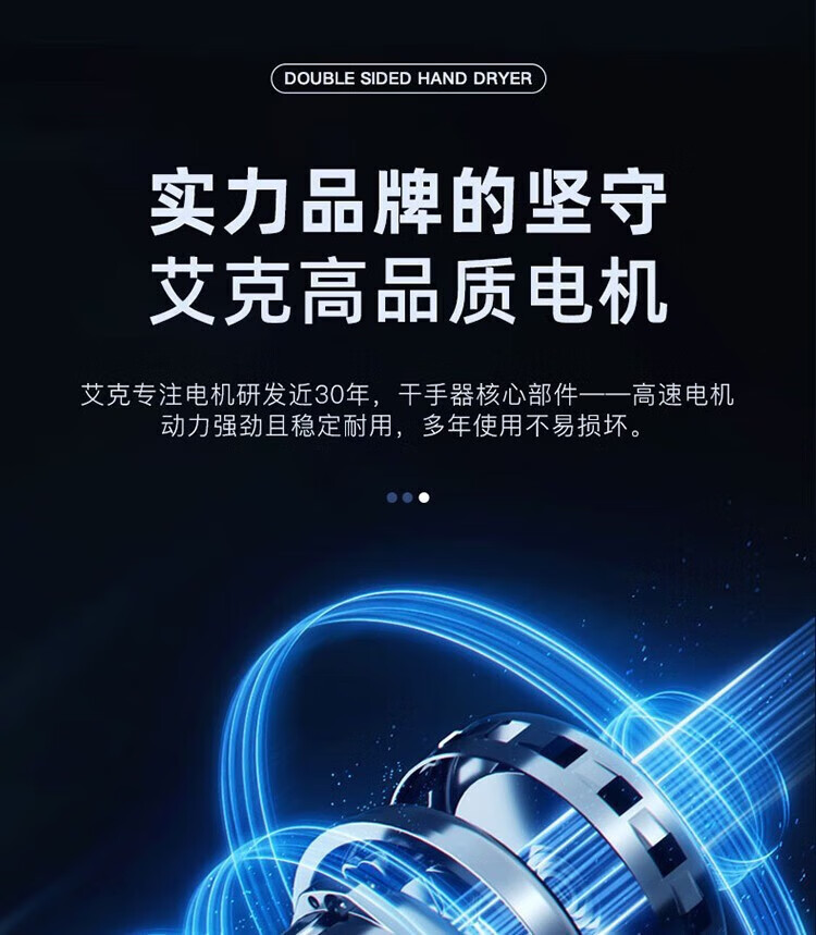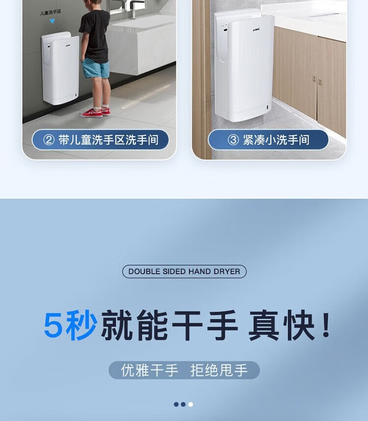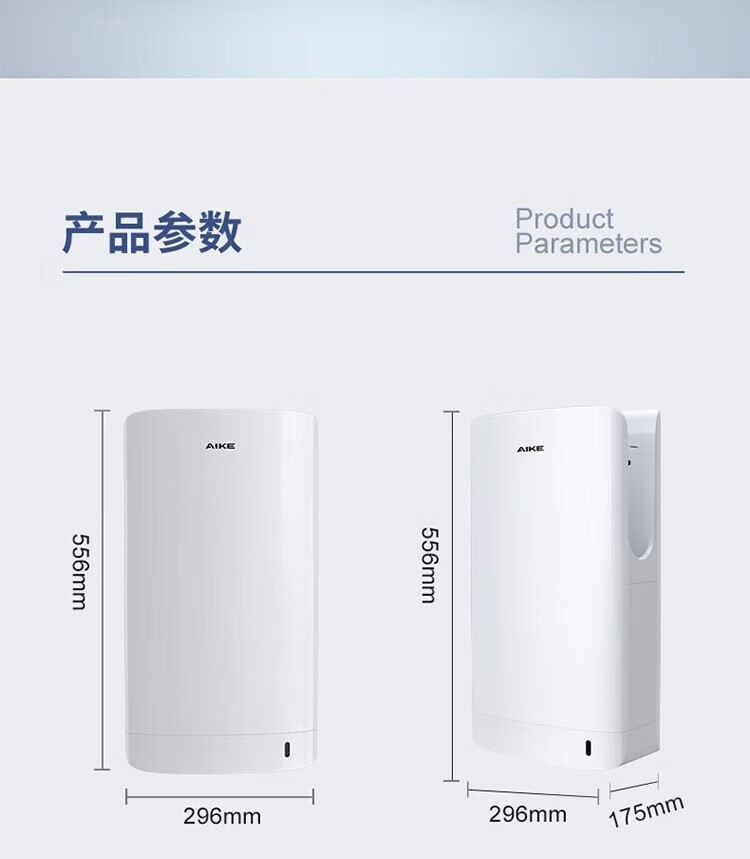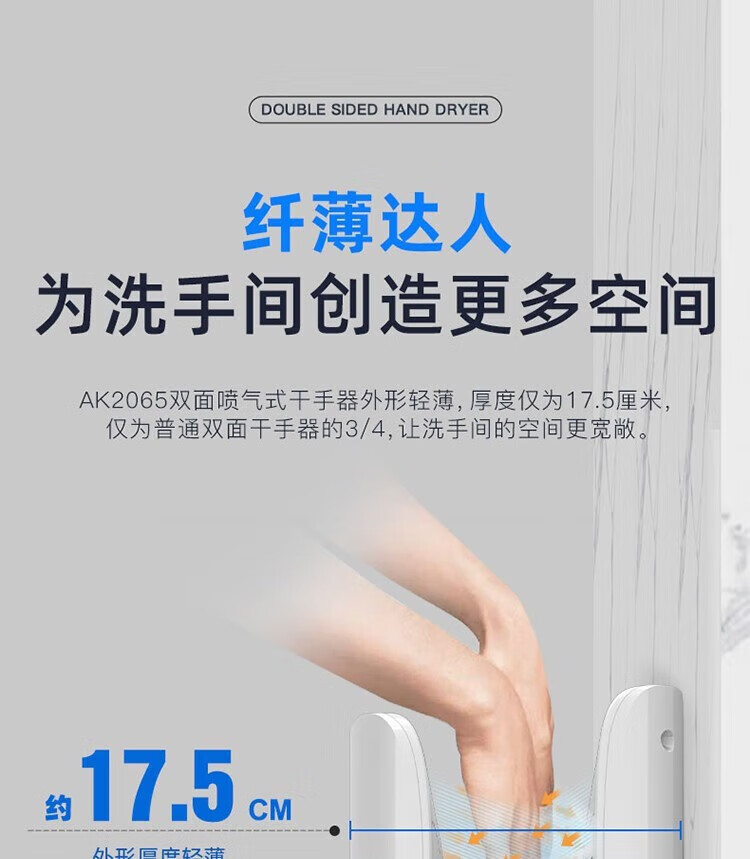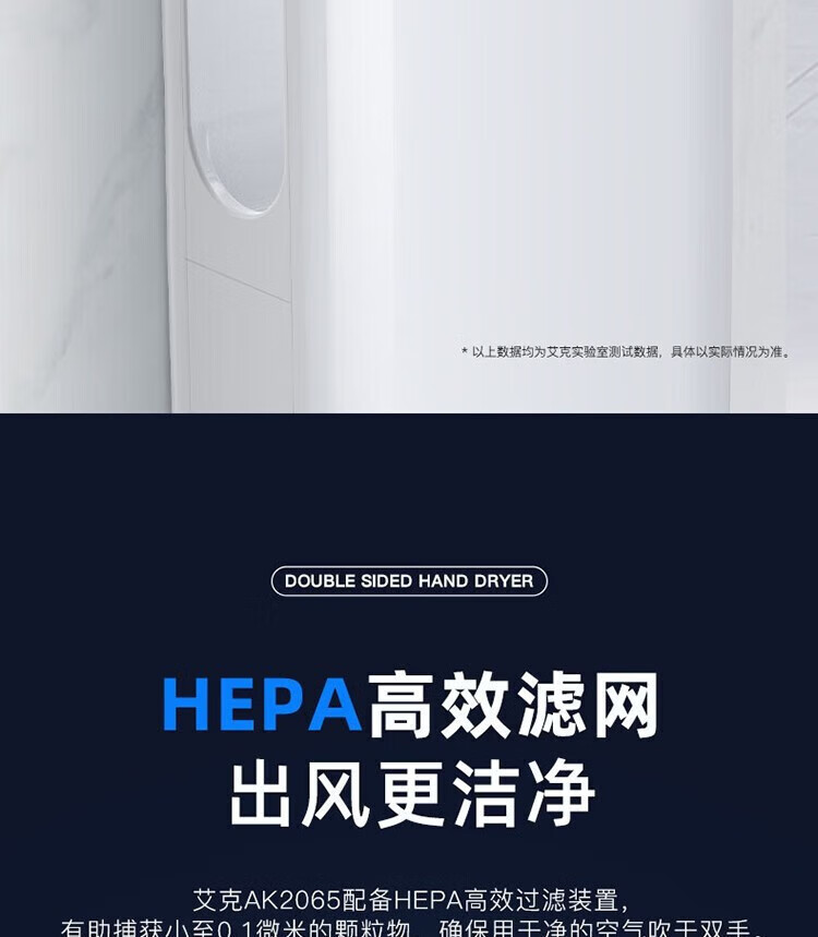 艾克(AIKE)AK2065 双面高速干手器烘手机 全自动感应卫生间商场无菌车间工厂干手机 双面出风/HEPA滤网 银色