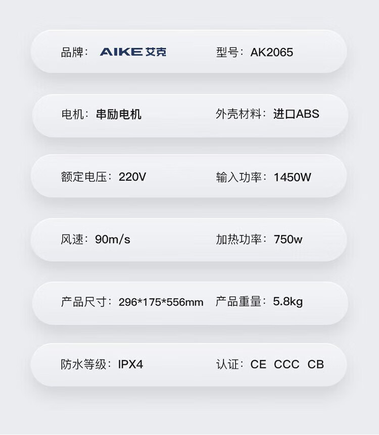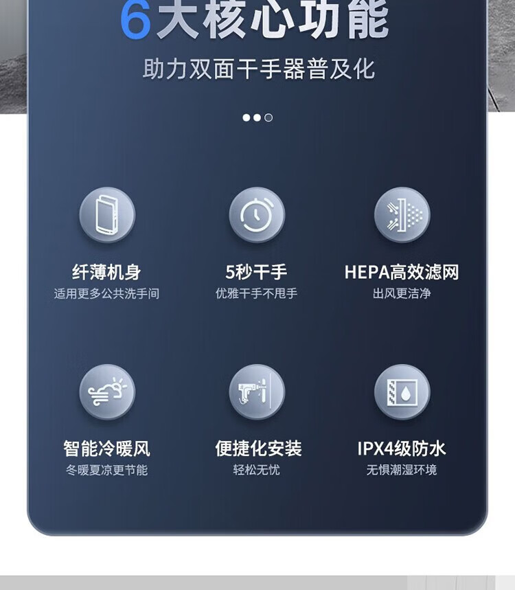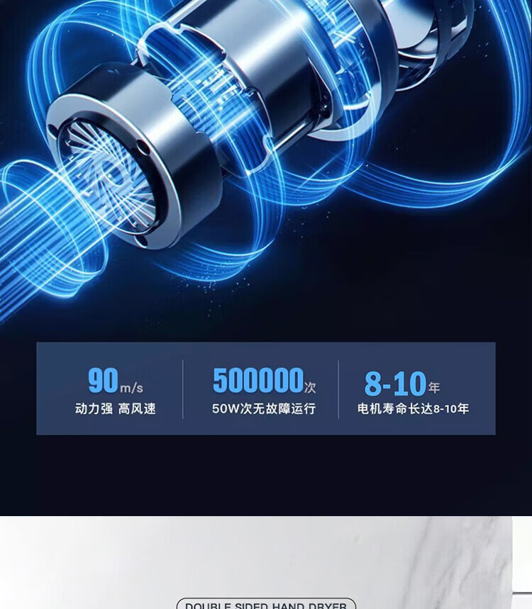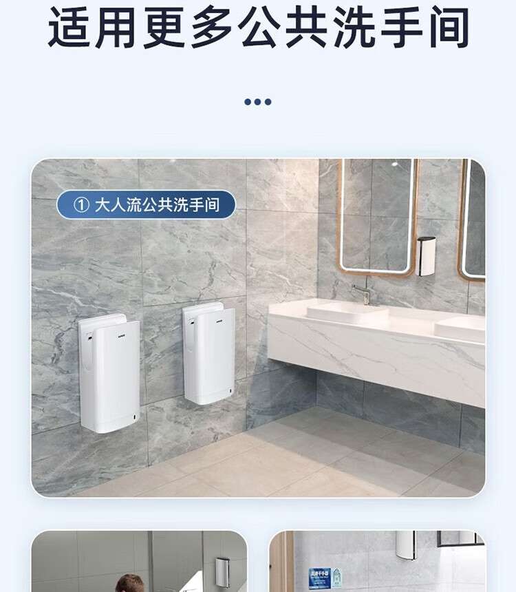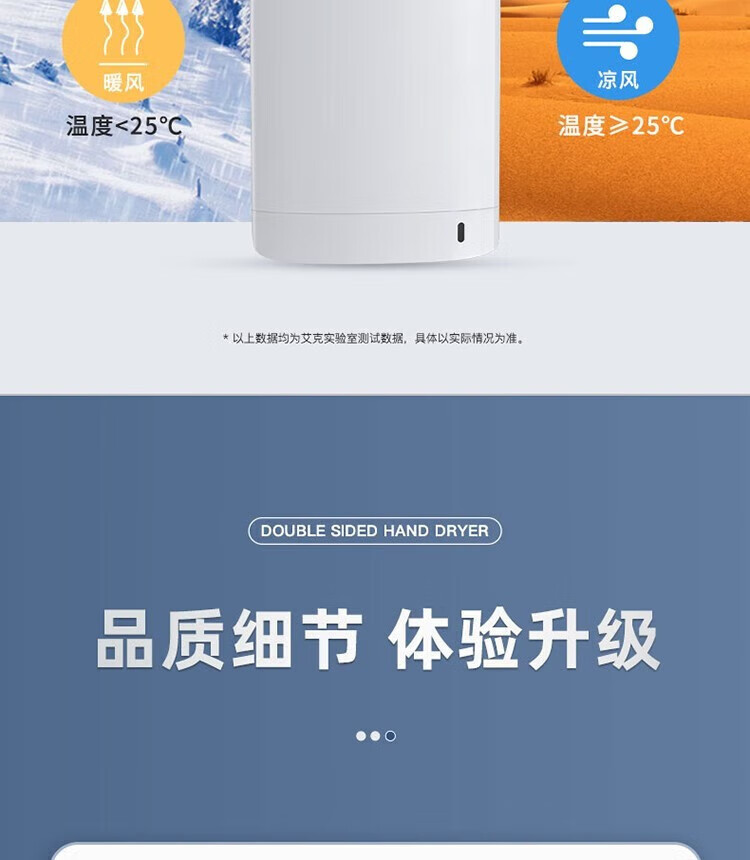 艾克(AIKE)AK2065 双面高速干手器烘手机 全自动感应卫生间商场无菌车间工厂干手机 双面出风/HEPA滤网 银色