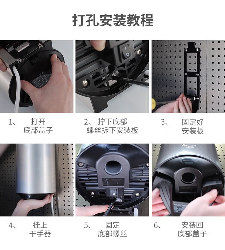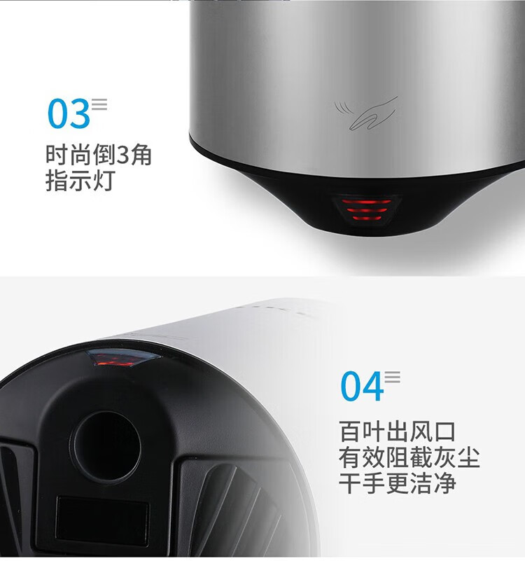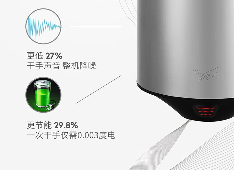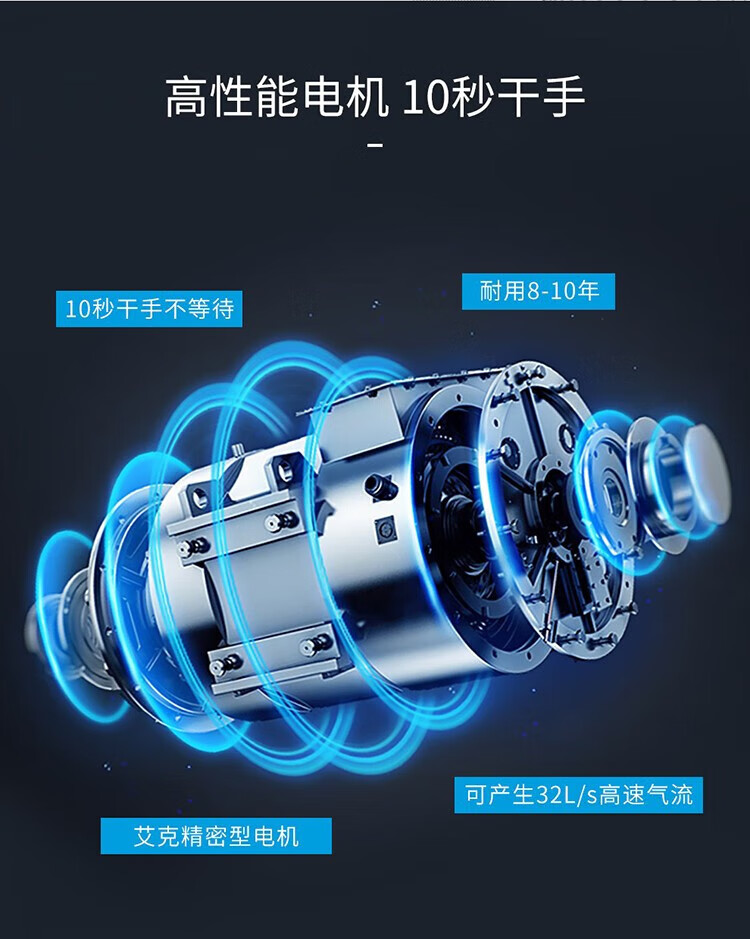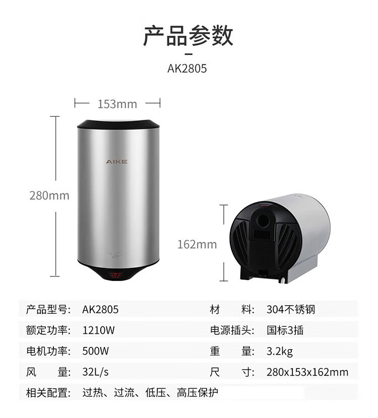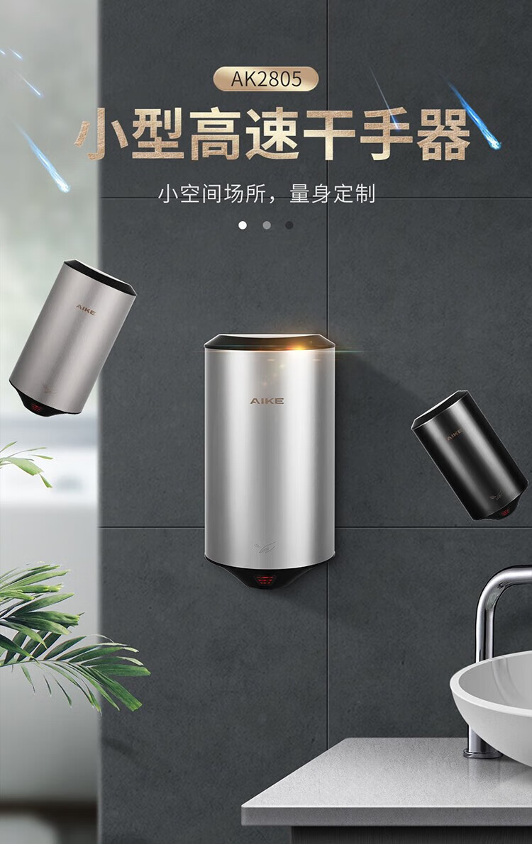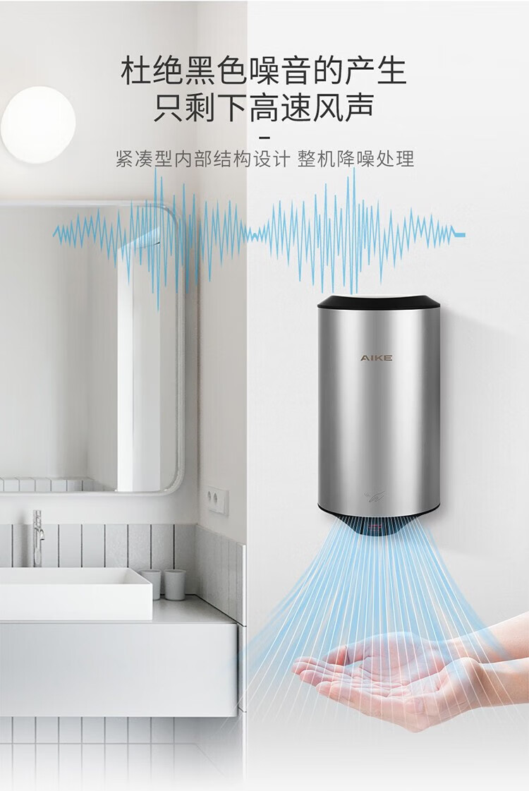 艾克(AIKE)AK2805 不锈钢高速干手器烘手机 全自动感应家商用餐厅卫生间烘手器 壁挂免打孔 拉丝银