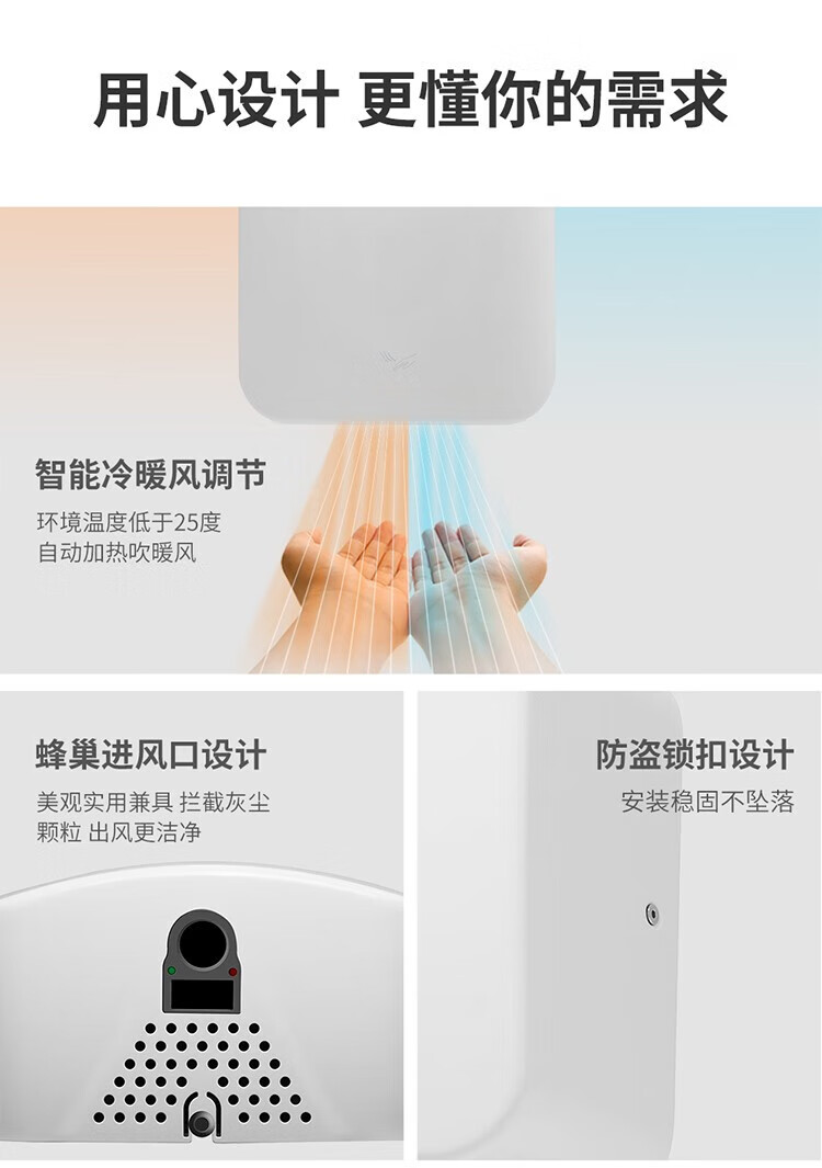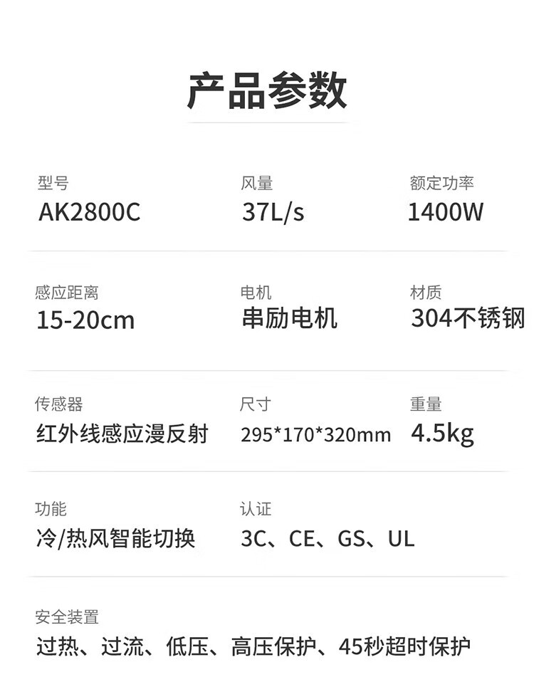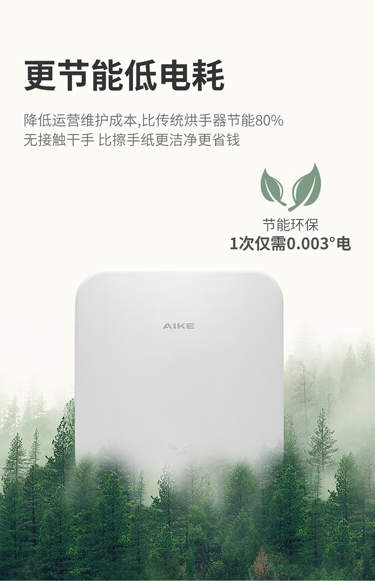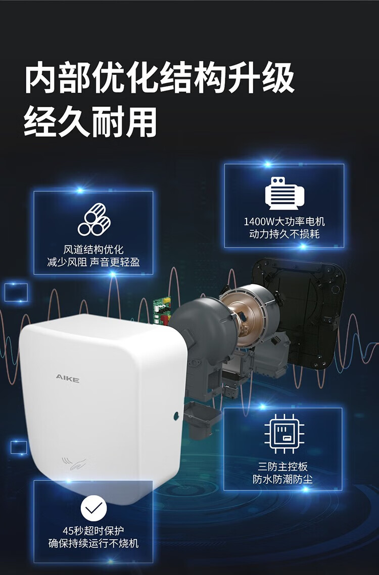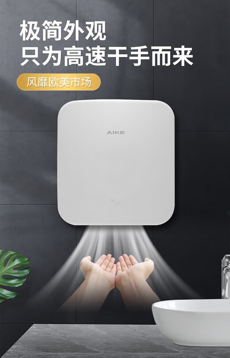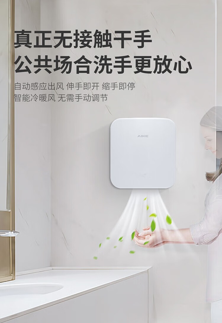 艾克(AIKE)AK2800C 干手器烘手机 不锈钢防水 卫生间厨房烘手器全自动感应吹手烘干手机 智能冷热风 白色