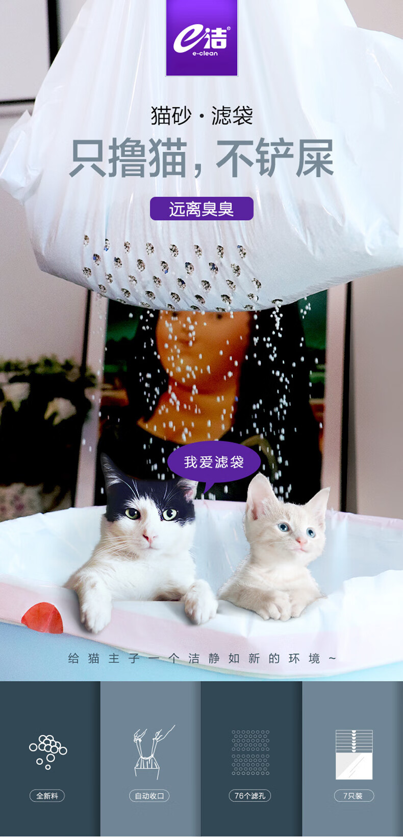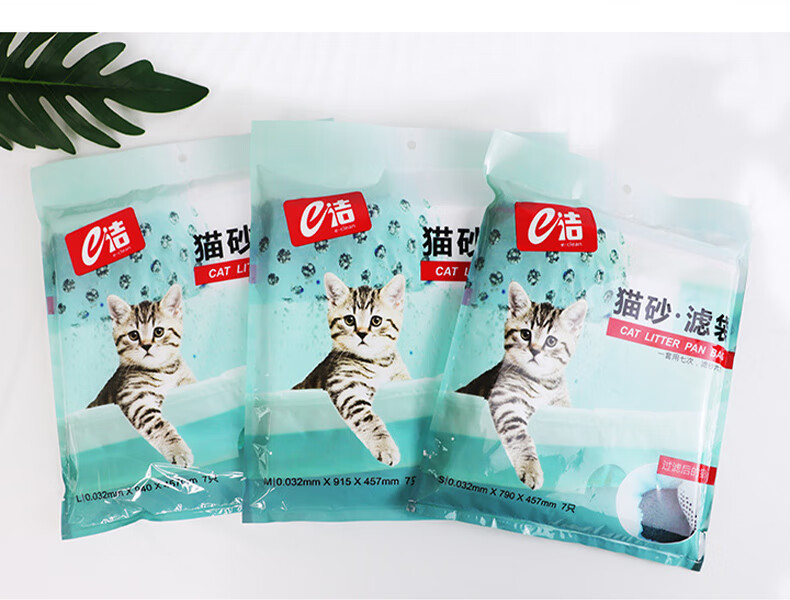 e洁 猫砂网袋 79*45.7cm猫盆厕所专用抽绳抽取式筛漏进口LDPE叠套式白色袋 特厚小号3.2丝640724 7只装