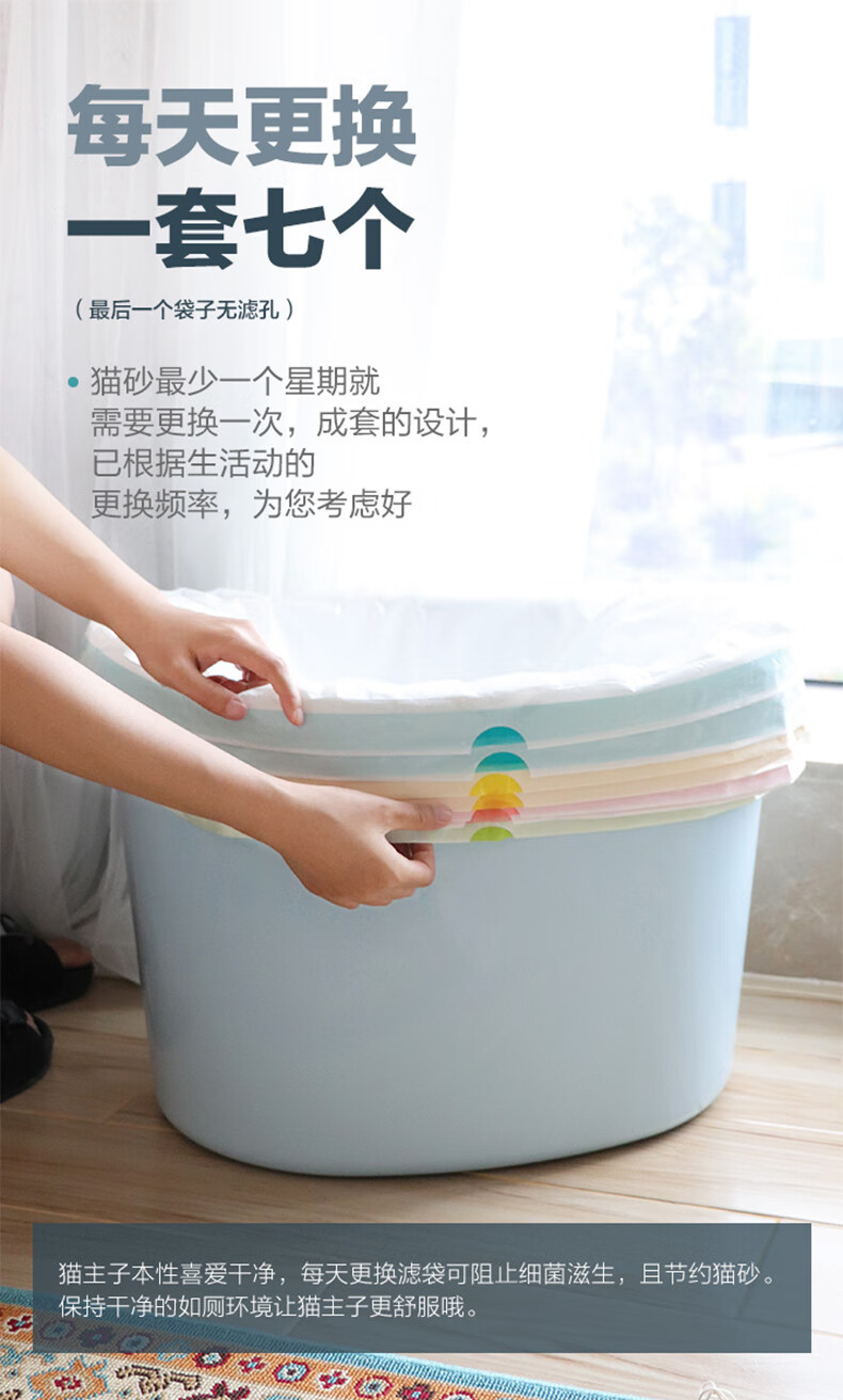 e洁 猫砂网袋 94*45.7cm猫盆厕所专用抽绳抽取式筛漏进口LDPE叠套式白色袋 特厚 大号3.2丝 640700 7只/包