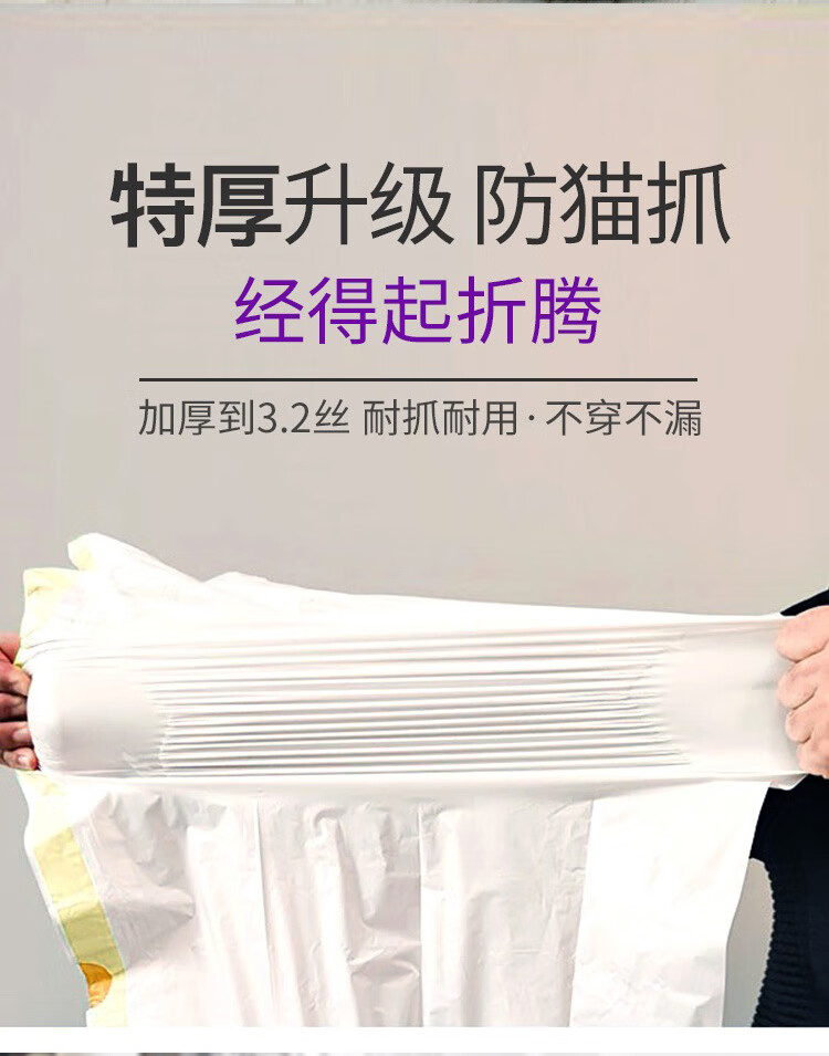 e洁 猫砂垃圾袋79*45.7cm 猫盆厕所专用抽绳抽取式免铲屎收集清洁袋 特厚S小号3.2丝 640281 7个/卷