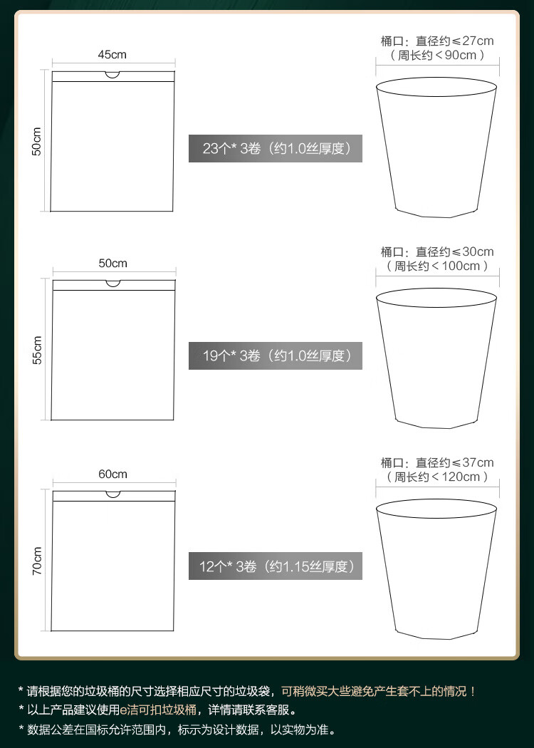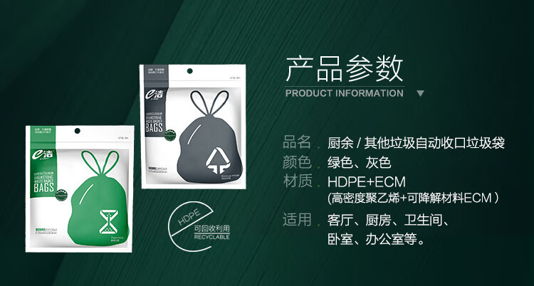 e洁 可降解抽绳垃圾袋45*50cm自动收口塑料袋手提厨房分类清洁工具 加厚绿色 DT104550-69-1包