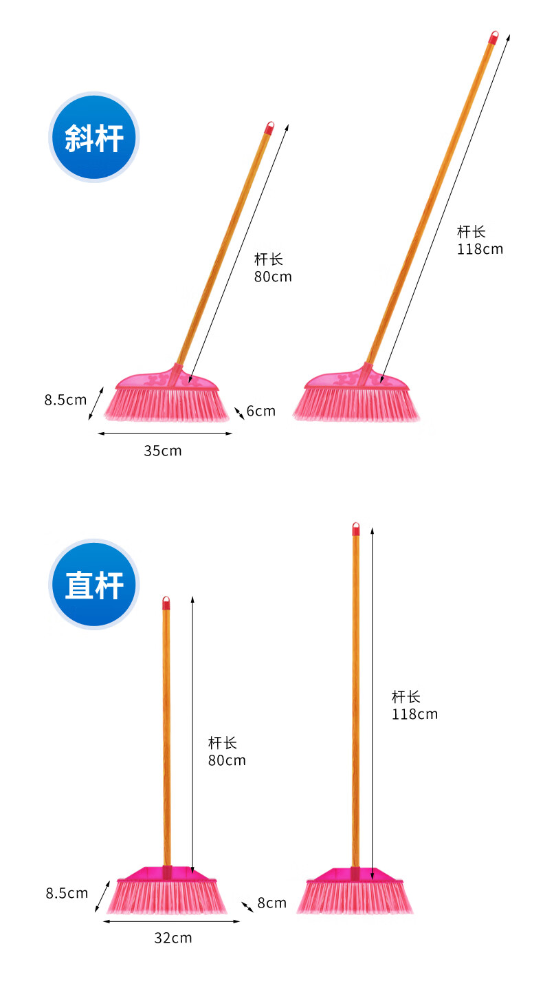 兰诗(LAUTEE) 木柄塑料丝扫把 直杆4排硬毛 长杆 LE047