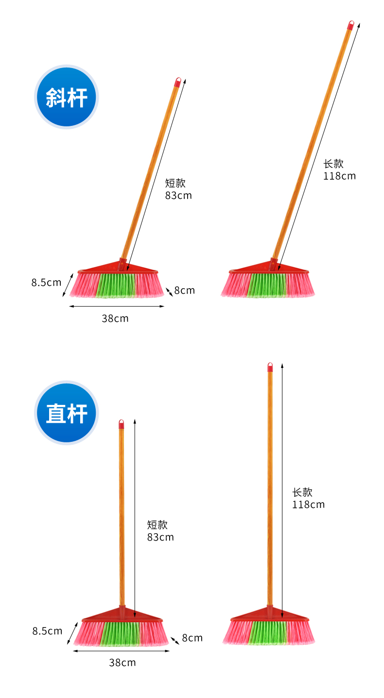 兰诗(LAUTEE) 木柄塑料丝扫把 加大宽头硬毛直杆长款 LE049