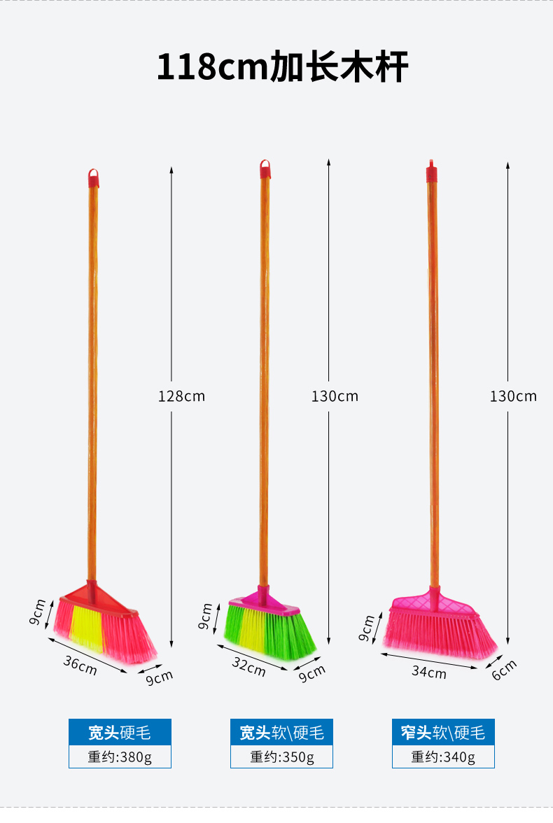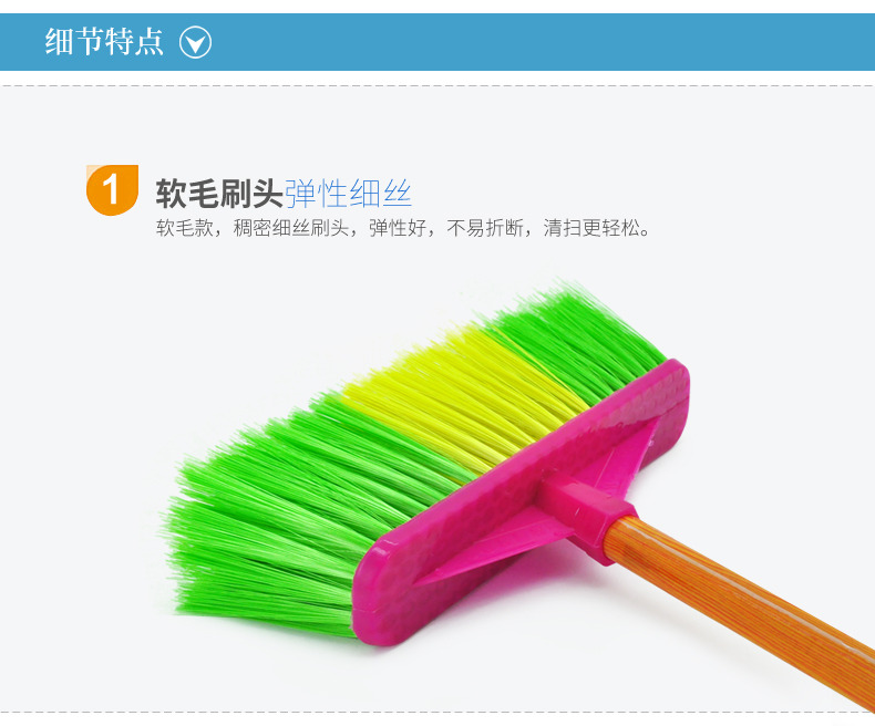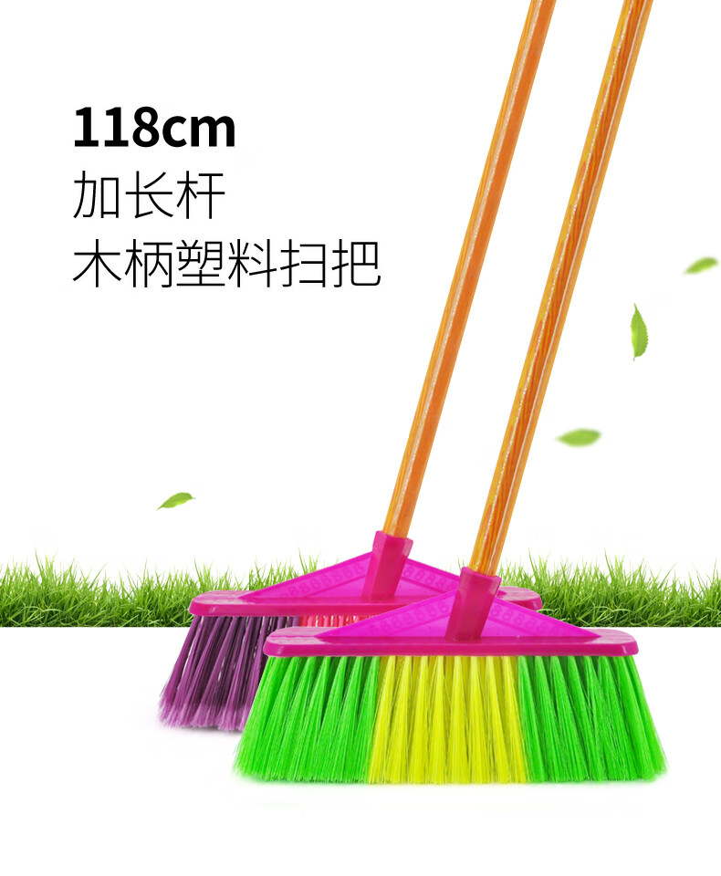 兰诗(LAUTEE) 木柄塑料丝扫把 黄色长斜杆宽头软毛 LE053