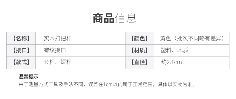 兰诗(LAUTEE)扫把杆 82cm 黄色 LE064