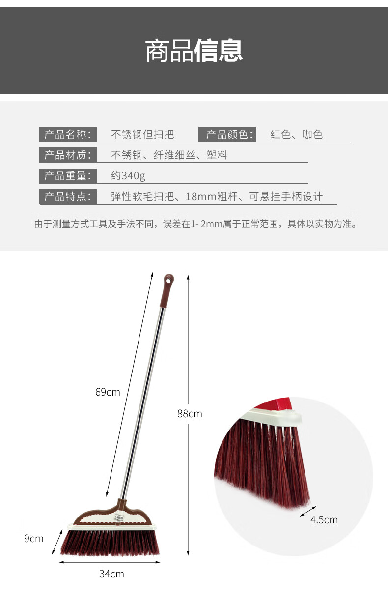 兰诗(LAUTEE) 不锈钢塑料扫把 咖色 LE068