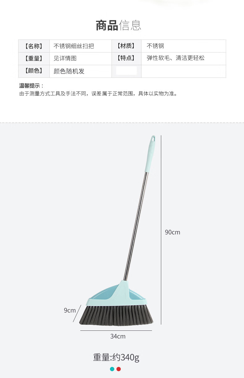 兰诗(LAUTEE) 不锈钢塑料扫把 颜色随机 LE069