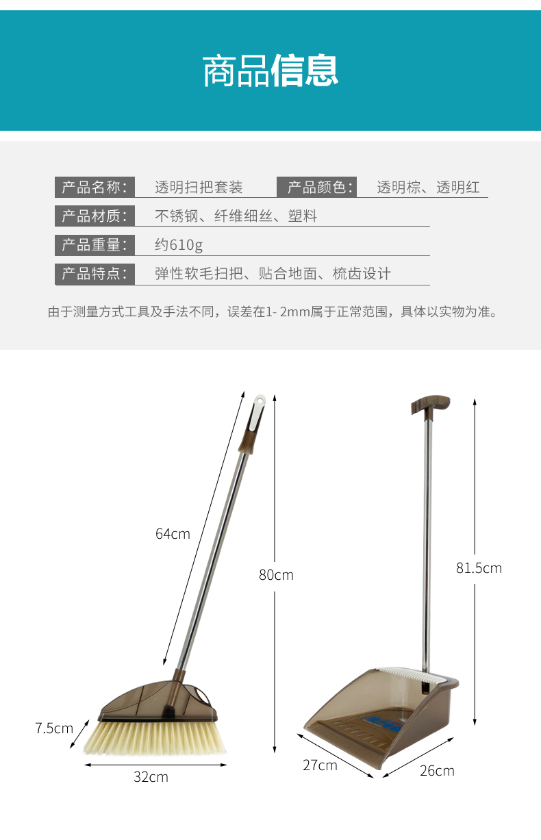 兰诗(LAUTEE) 不锈钢扫把簸箕套装 透明棕 LE075