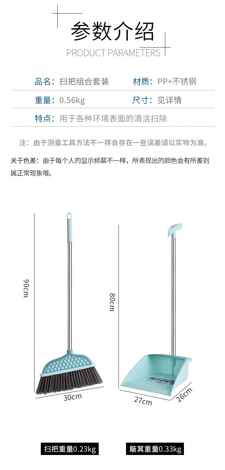 兰诗(LAUTEE) 不锈钢扫把簸箕套装 颜色随机 LE077
