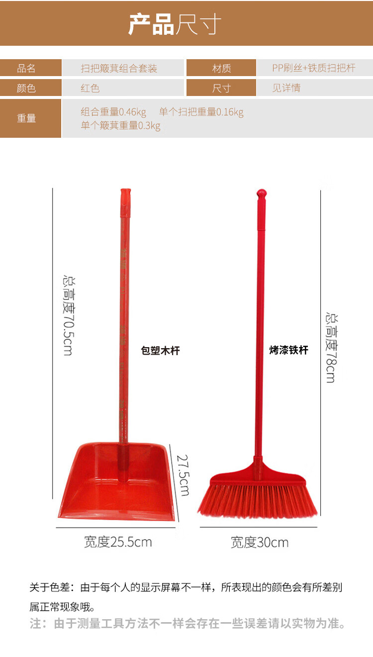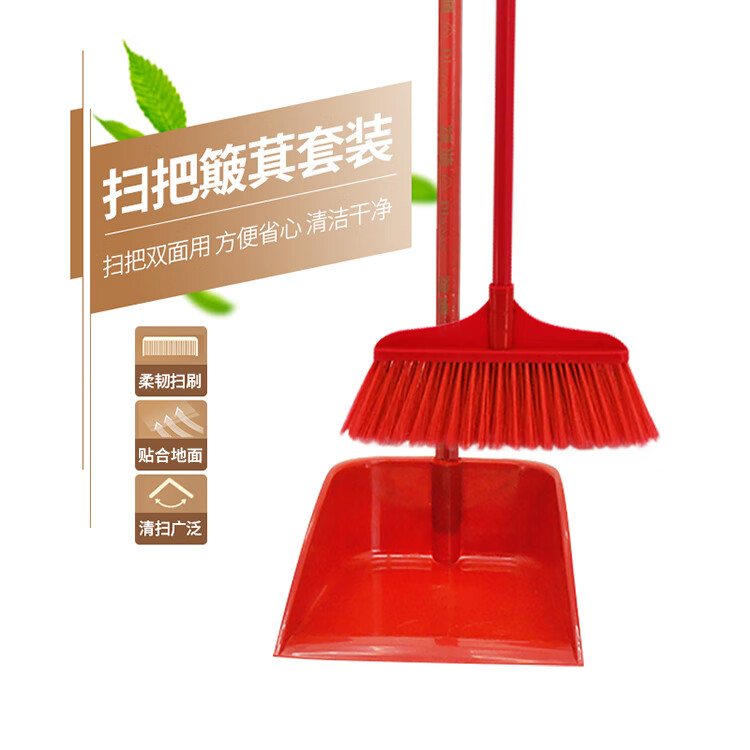 兰诗(LAUTEE) 铁杆扫把簸箕套装 红色 LE079