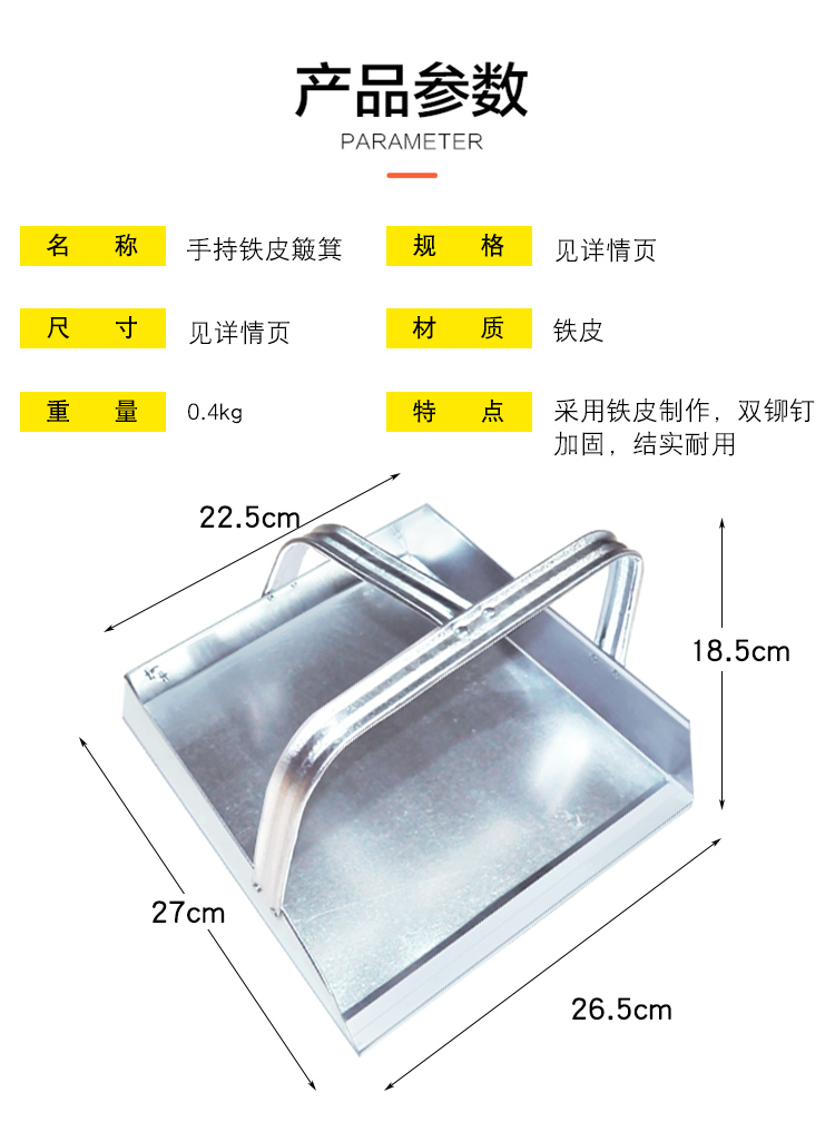 兰诗(LAUTEE) 铁皮簸箕 短把手持款 LE097