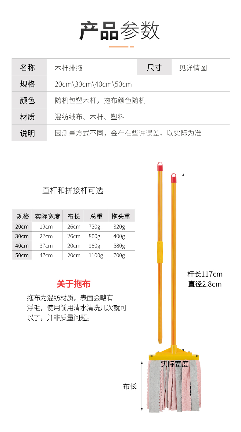兰诗(LAUTEE) 木杆拖把 30cm 颜色随机 LE165