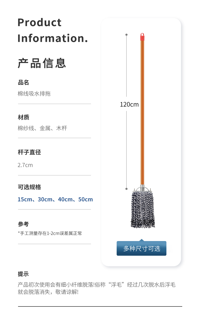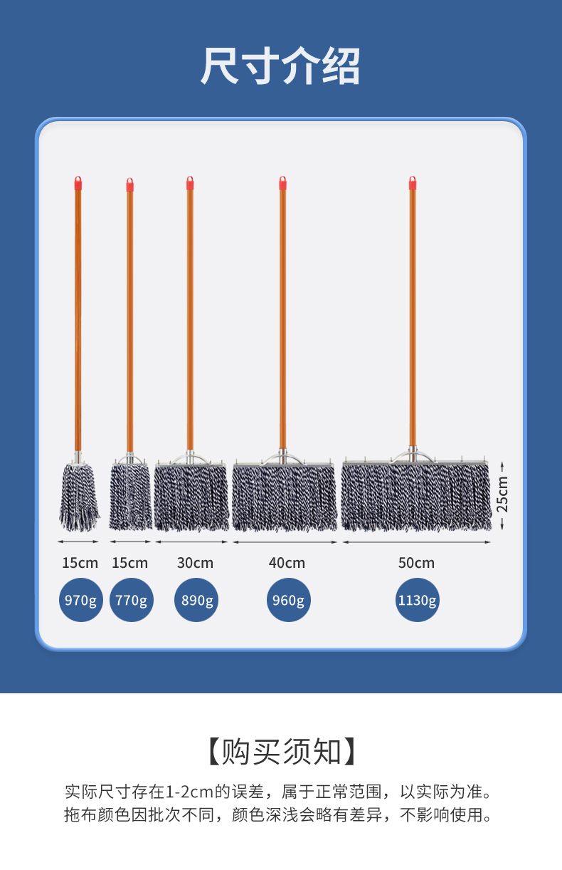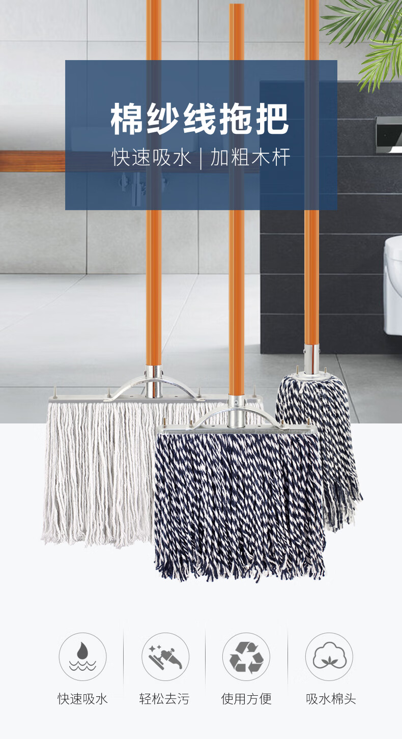 兰诗(LAUTEE) 木杆拖把 铁头排拖 白棉线 15cm LE168
