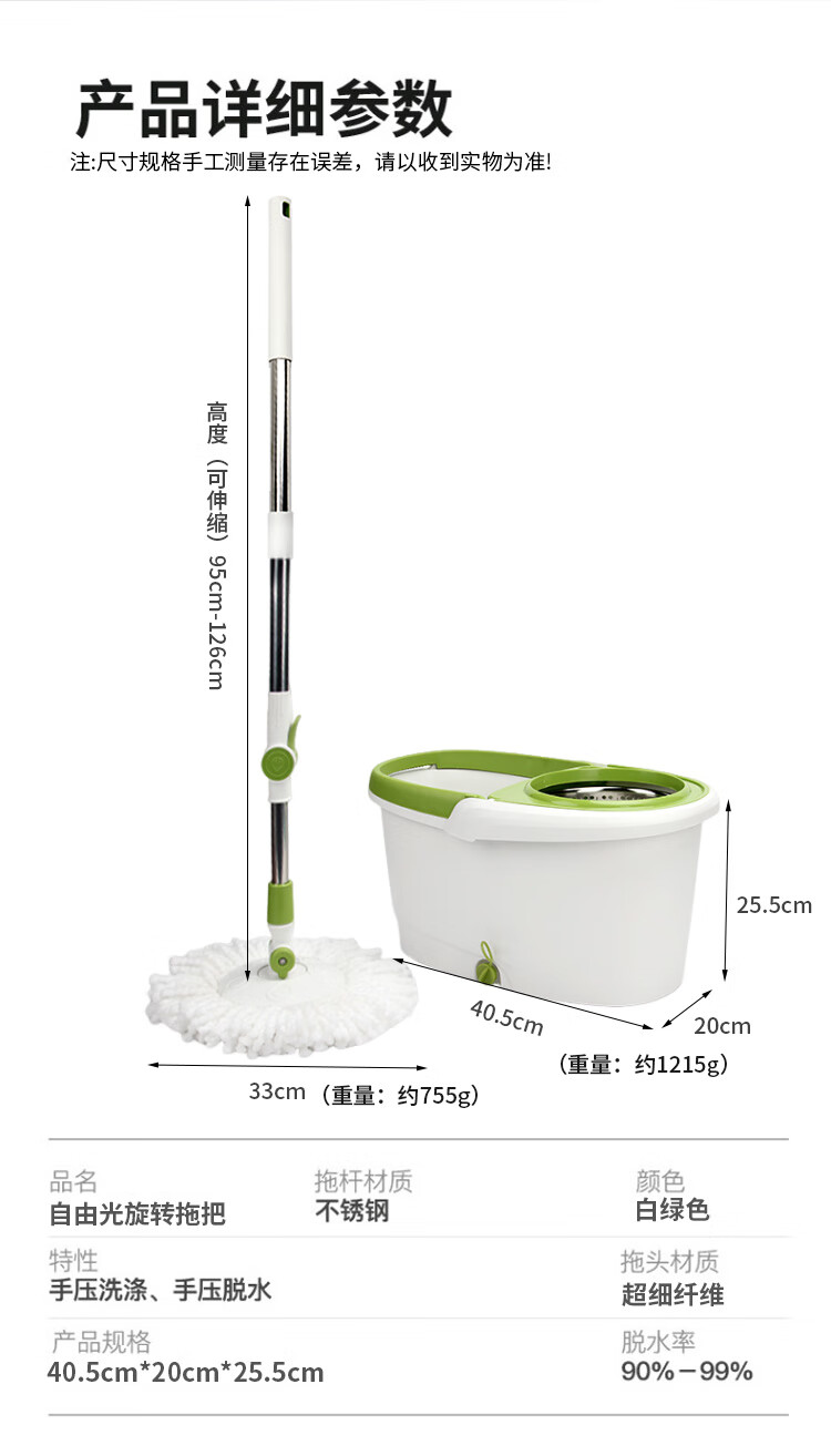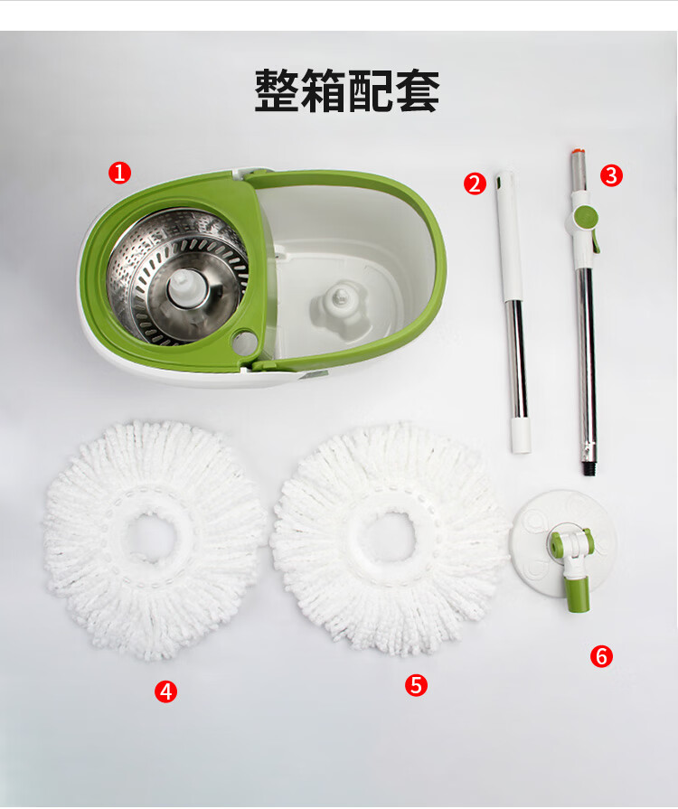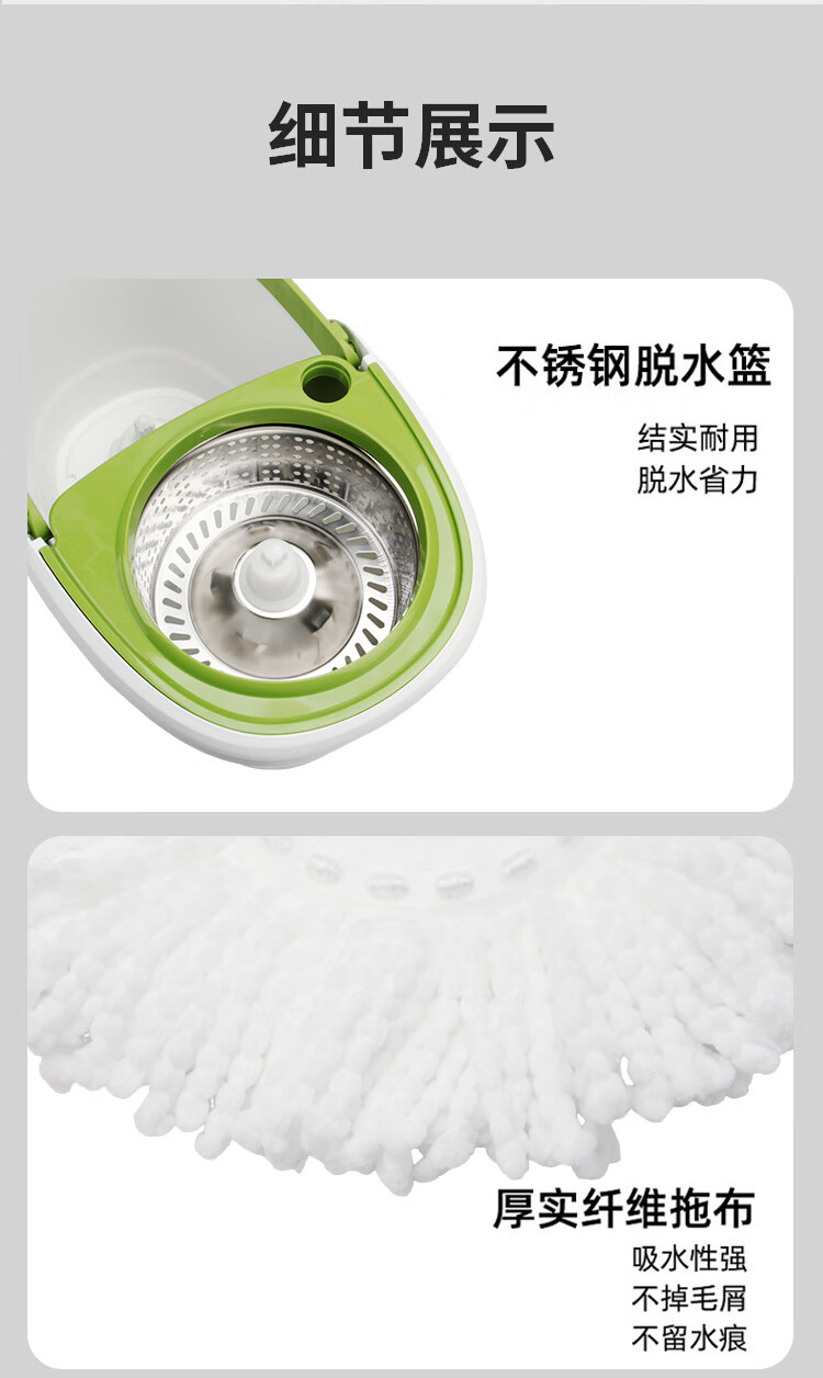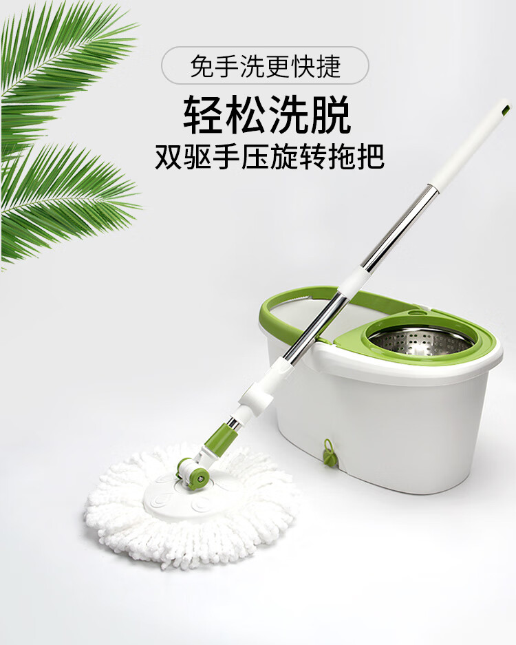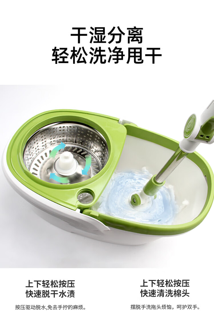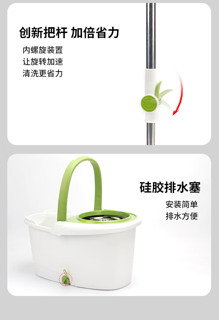 兰诗(LAUTEE) 旋转拖把桶套装 白绿色1杆2布 LE214