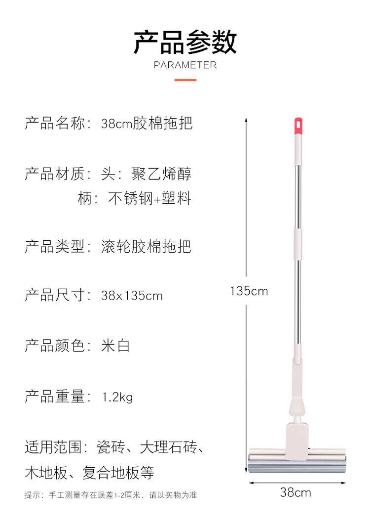 兰诗(LAUTEE) 胶棉拖把 米白色 38cm LE229