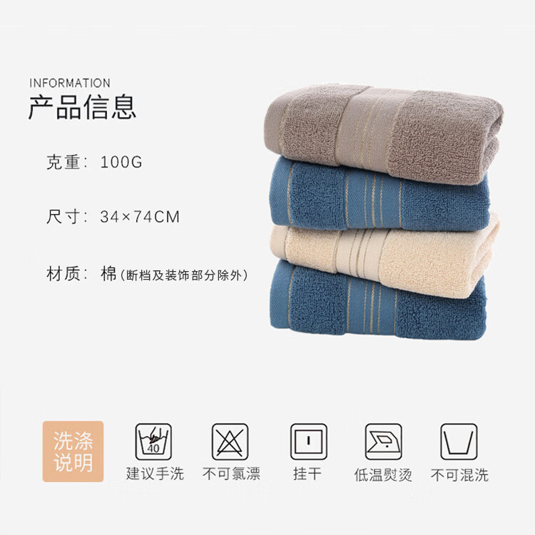 兰诗(LAUTEE) 棉毛巾 金丝款 靛蓝色 34*74cm LE305