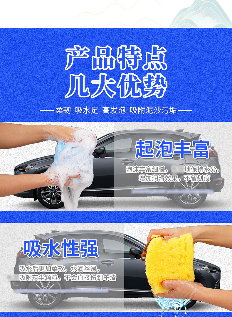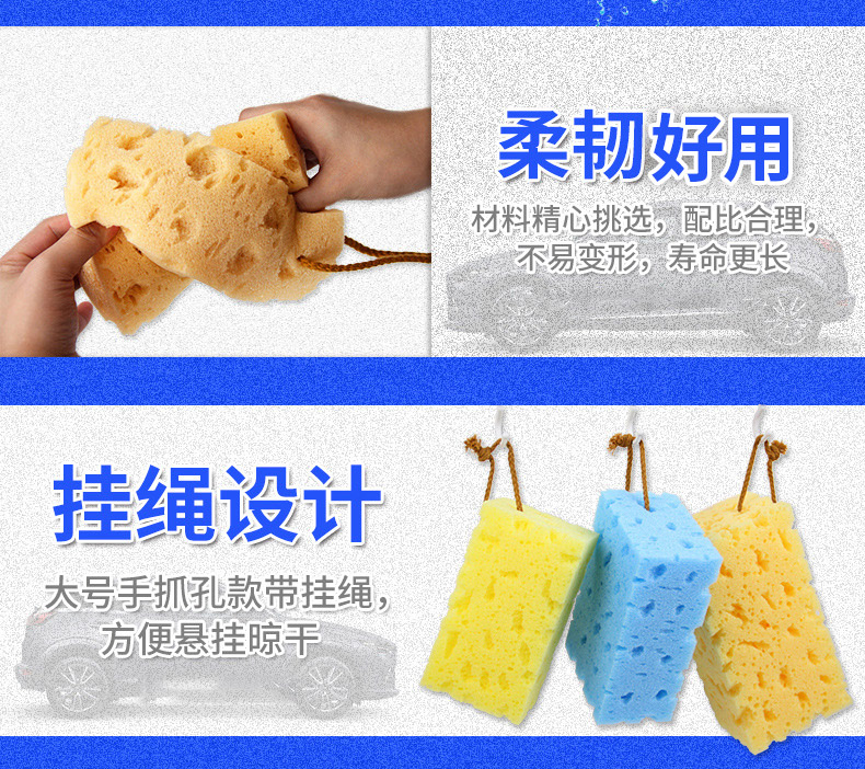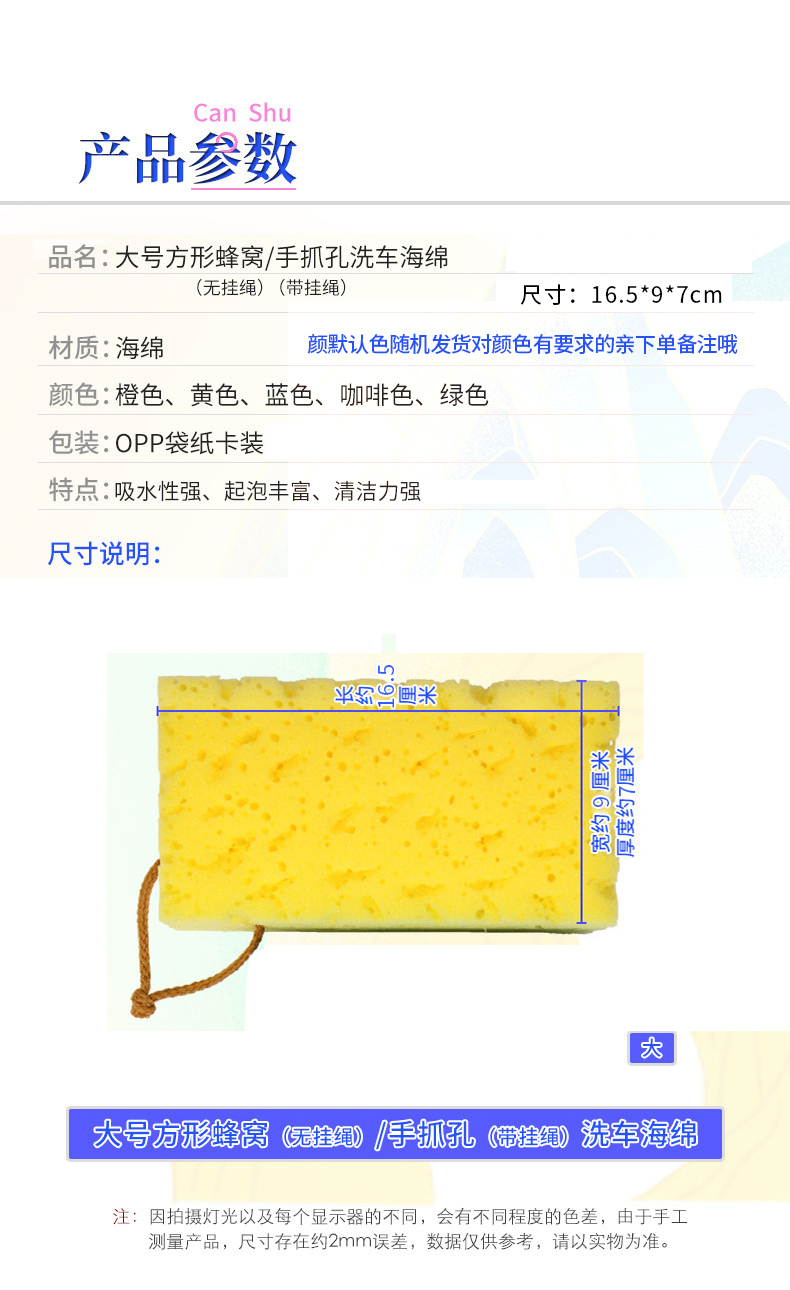 兰诗(LAUTEE) 洗车海绵 方形带绳 颜色随机 LE328