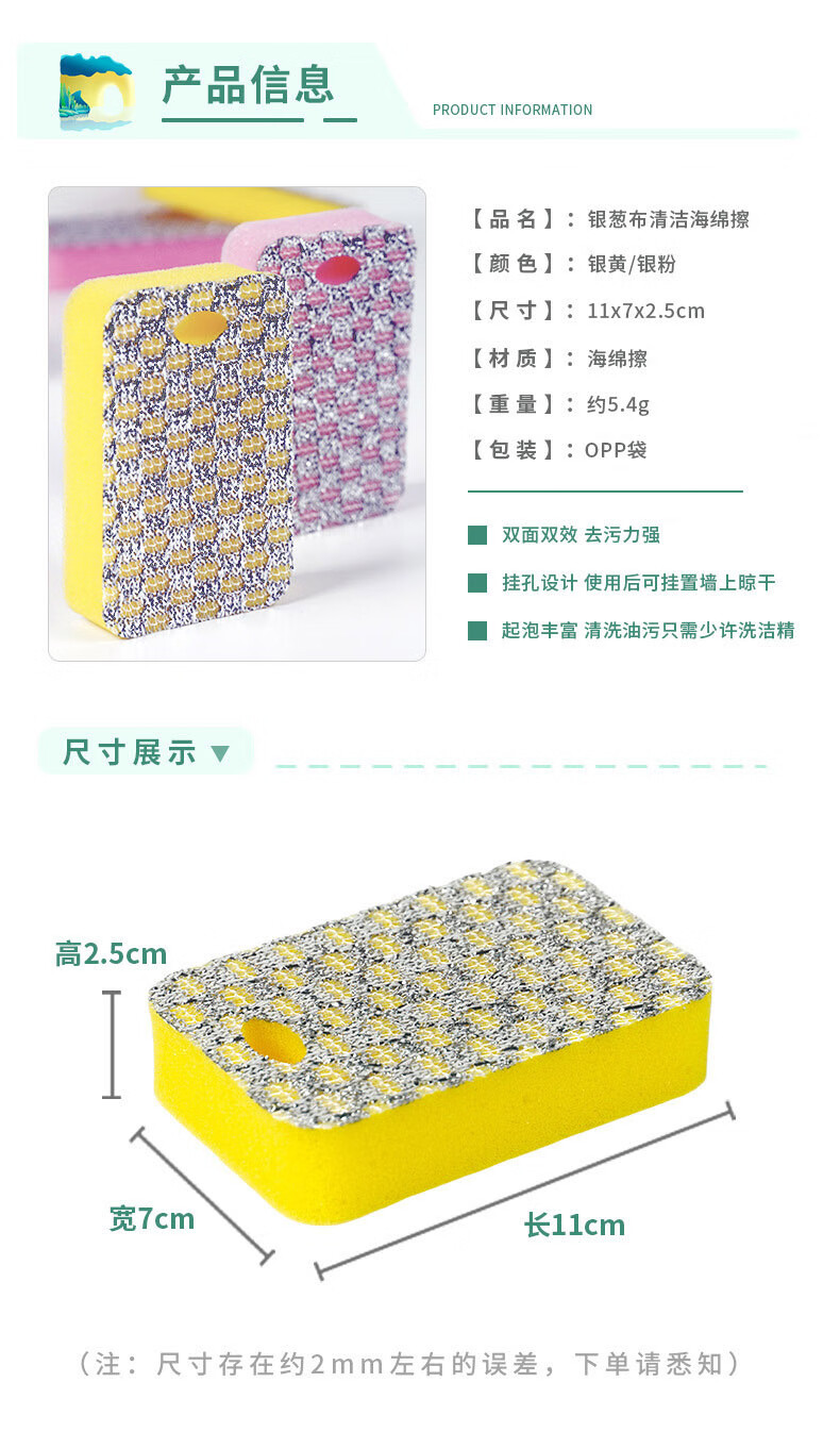 兰诗(LAUTEE) 银葱布海绵擦 颜色随机 LE330