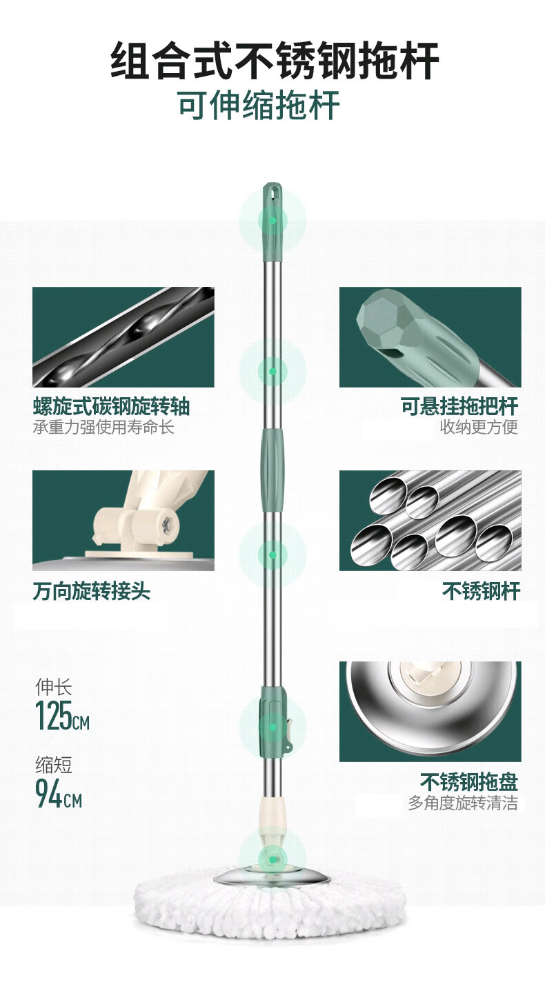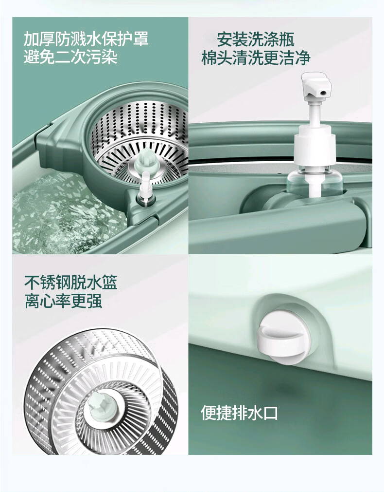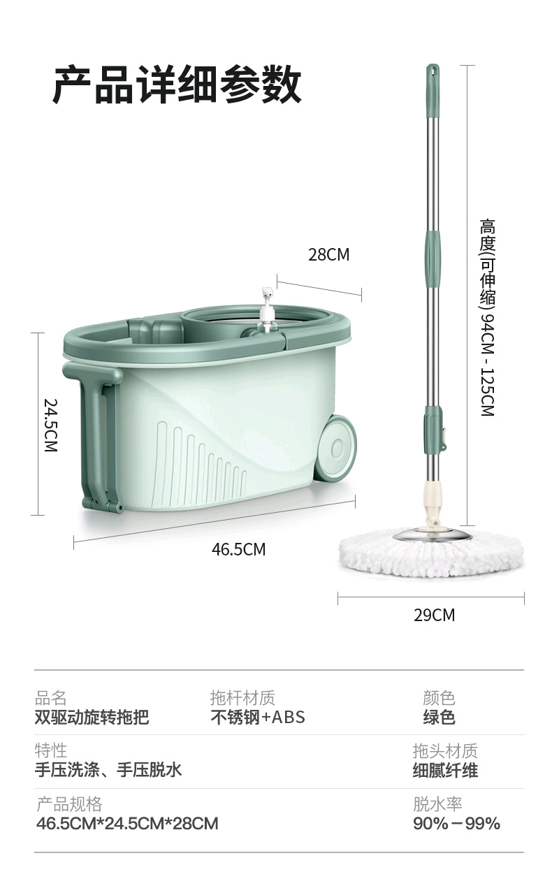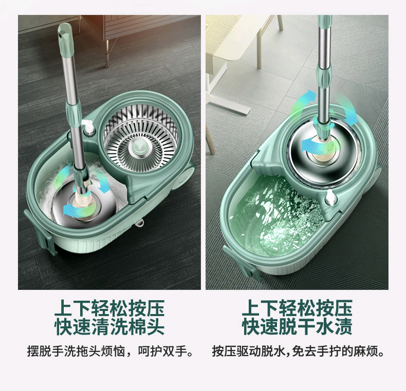 兰诗(LAUTEE) 拖把桶套装 旋转拖把+拖把头2个 LE475