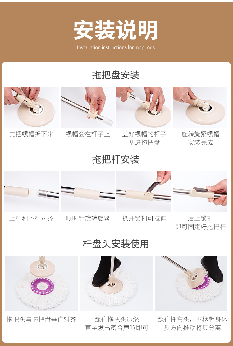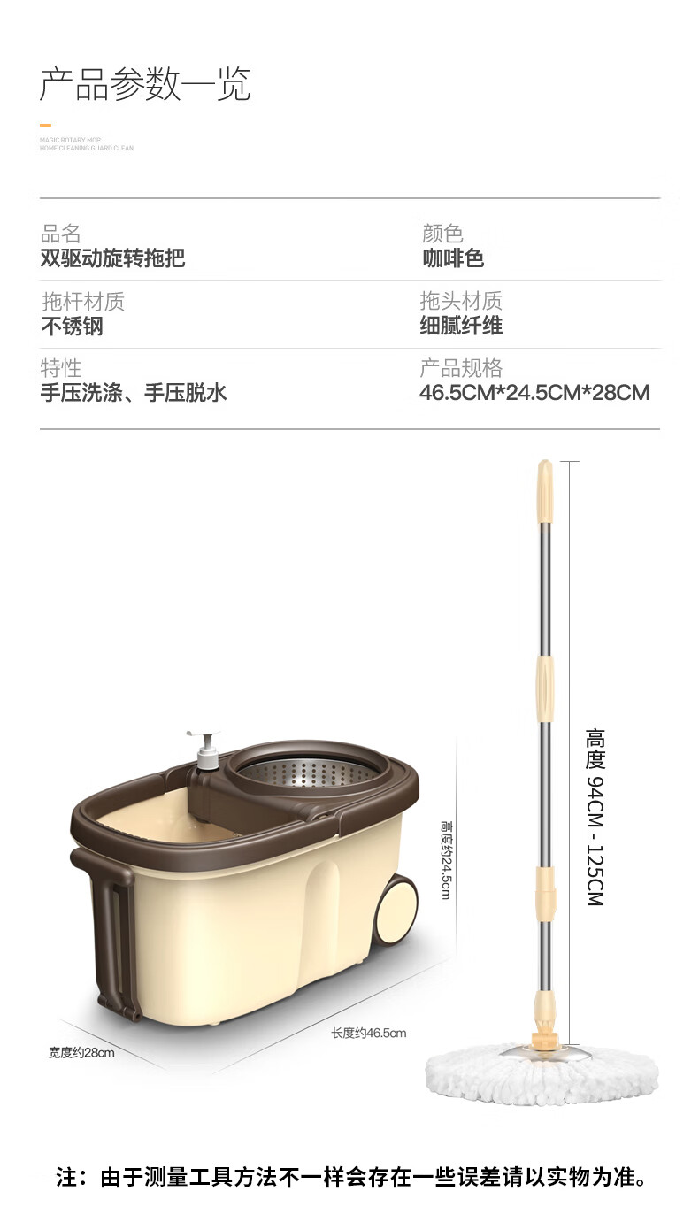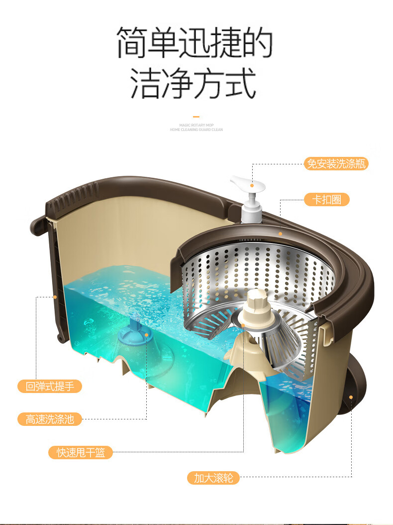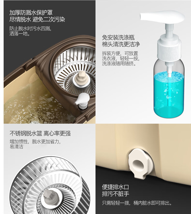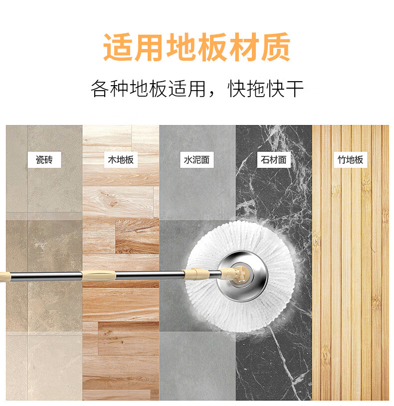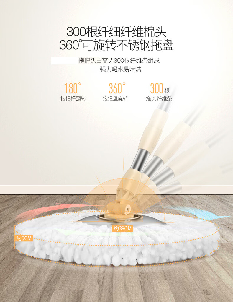 兰诗(LAUTEE) 拖把桶套装 旋转拖把+拖把头2个 LE477