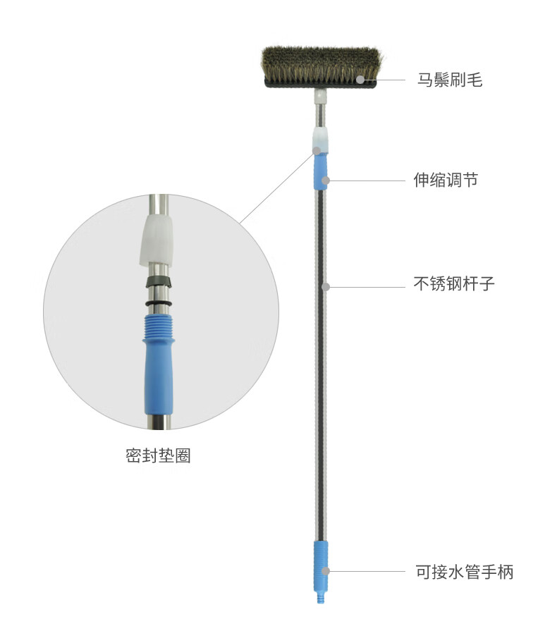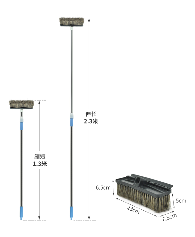 兰诗(LAUTEE) 伸缩杆地刷 复合马鬃毛 2.3米款 LE461