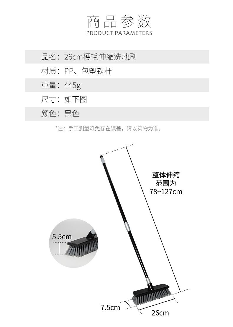 兰诗(LAUTEE) 伸缩杆地刷 黑色 26cm LE474