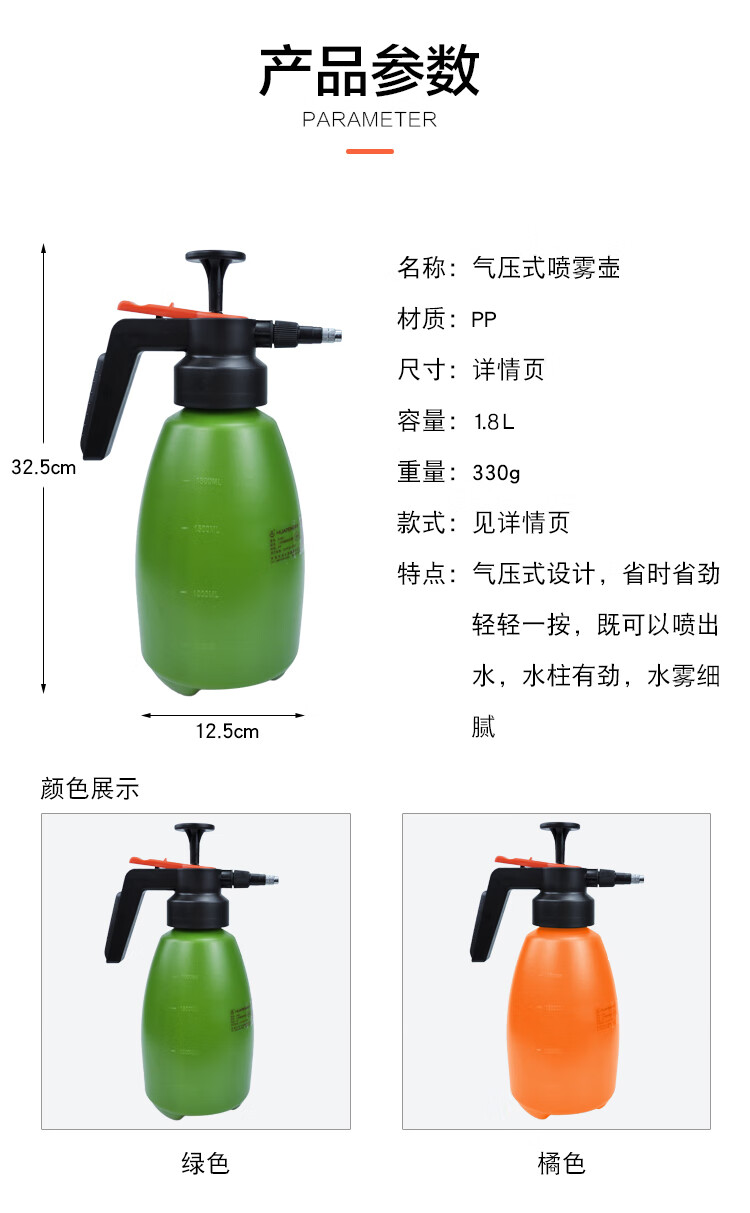 兰诗(LAUTEE) 气压式喷壶 1.8L 绿色 LE489