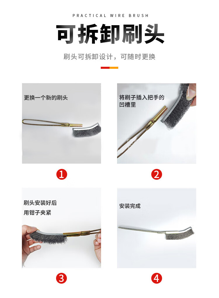 兰诗(LAUTEE) 铜丝刷 直头不锈钢丝刷头 LE406