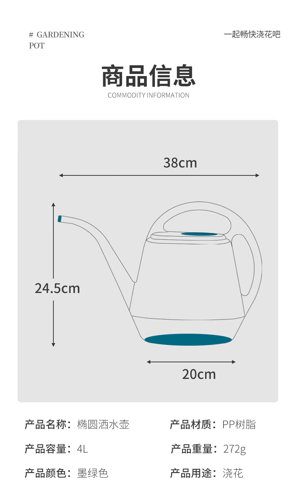 兰诗(LAUTEE) 浇花洒水壶 4L 墨绿 LE521