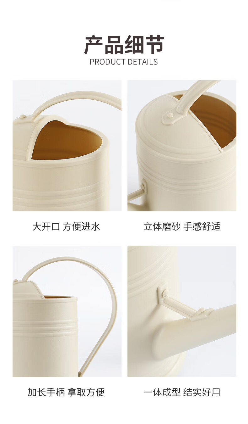 兰诗(LAUTEE) 浇花洒水壶 2L 米色 LE527