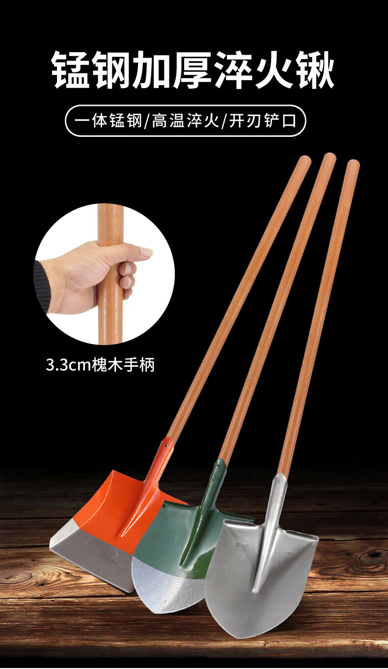 兰诗(LAUTEE) 铁锨 橘红方锨+1.5米木杆 LE583