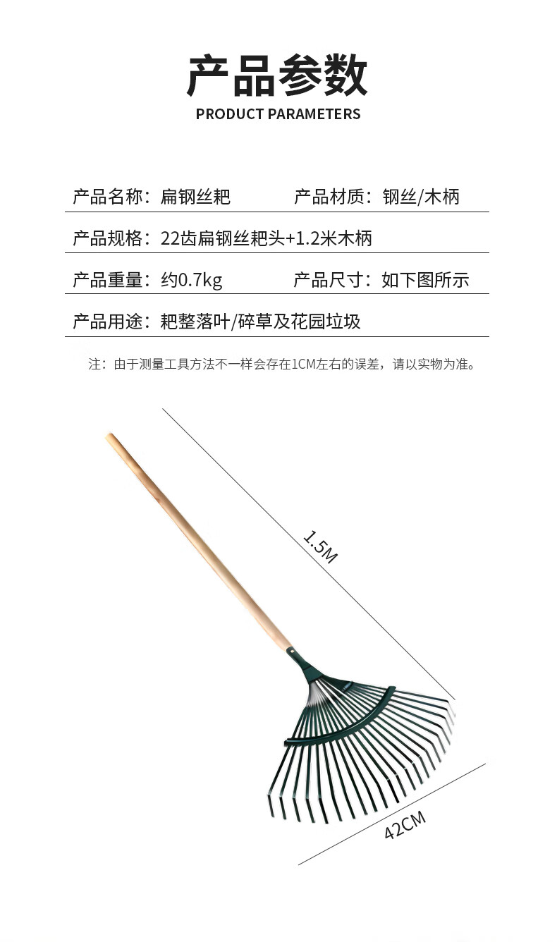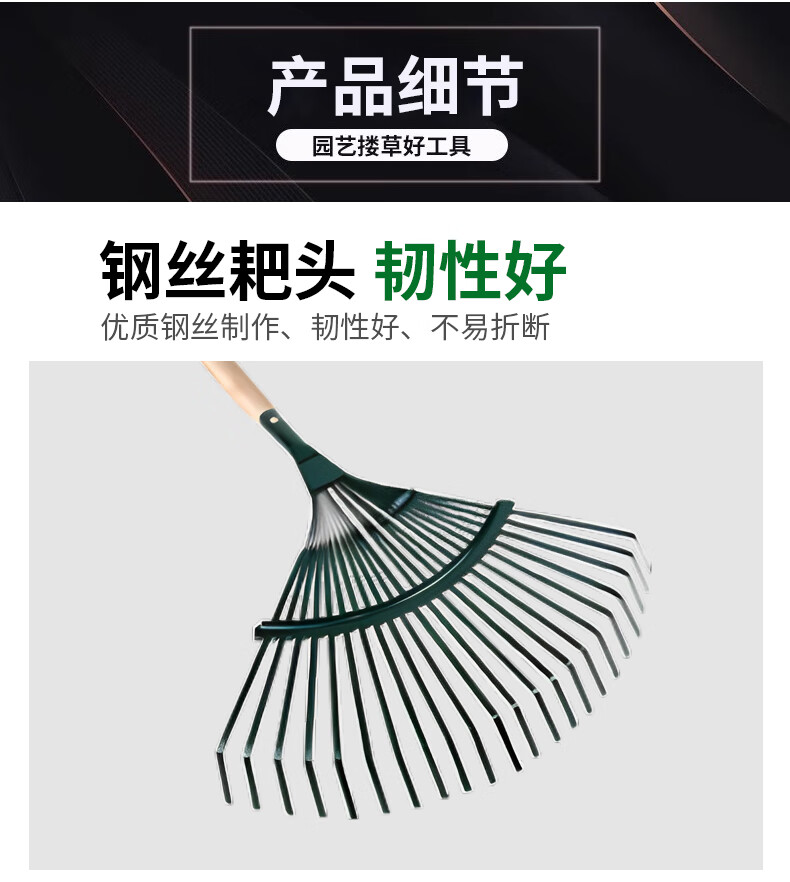 兰诗(LAUTEE) 钢丝耙 22齿耙头+1.2米木柄 LE608