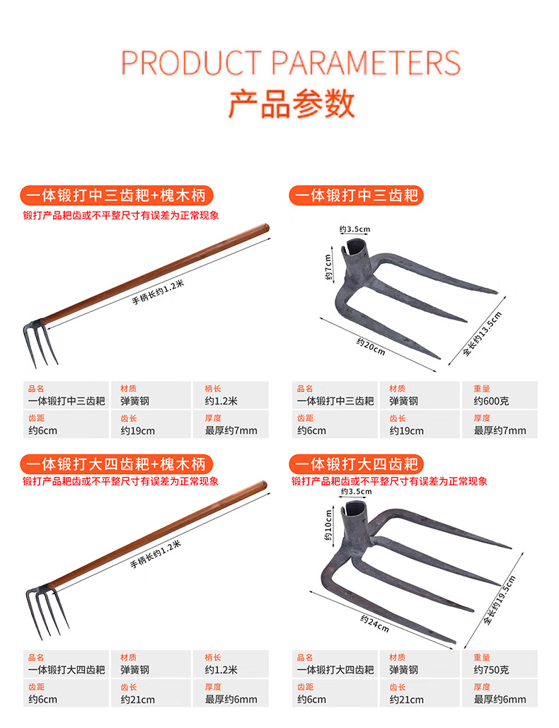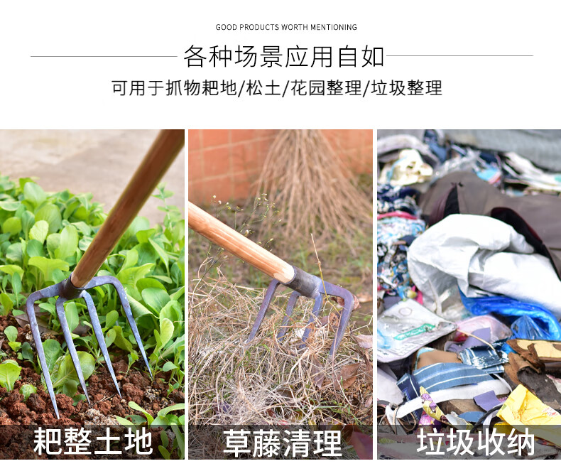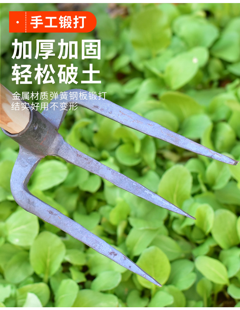 兰诗(LAUTEE) 草耙子 一体型三齿耙+1.2米槐木柄 LE622