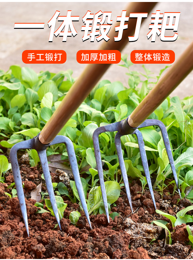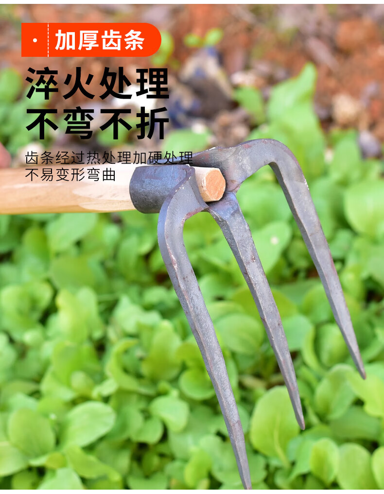 兰诗(LAUTEE)草耙子 一体型四齿耙+1.2米槐木柄 LE623
