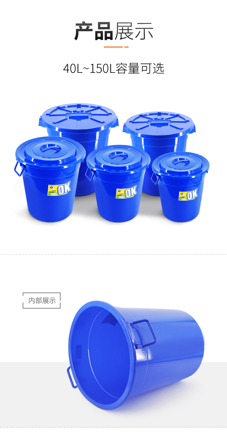 兰诗(LAUTEE) 带盖圆形水桶 100L 蓝色 LE677