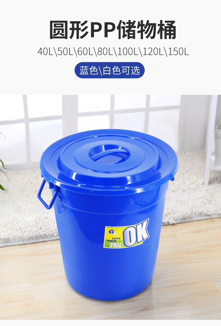 兰诗(LAUTEE) 带盖圆形水桶 120L 蓝色 LE679