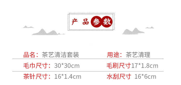 兰诗(LAUTEE) 茶具清洁套装 毛巾30*30cm+刮水器+圆头毛刷+茶刀 LE687