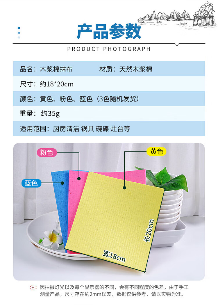 兰诗(LAUTEE) 木浆棉抹布 颜色随机5个装 LE837
