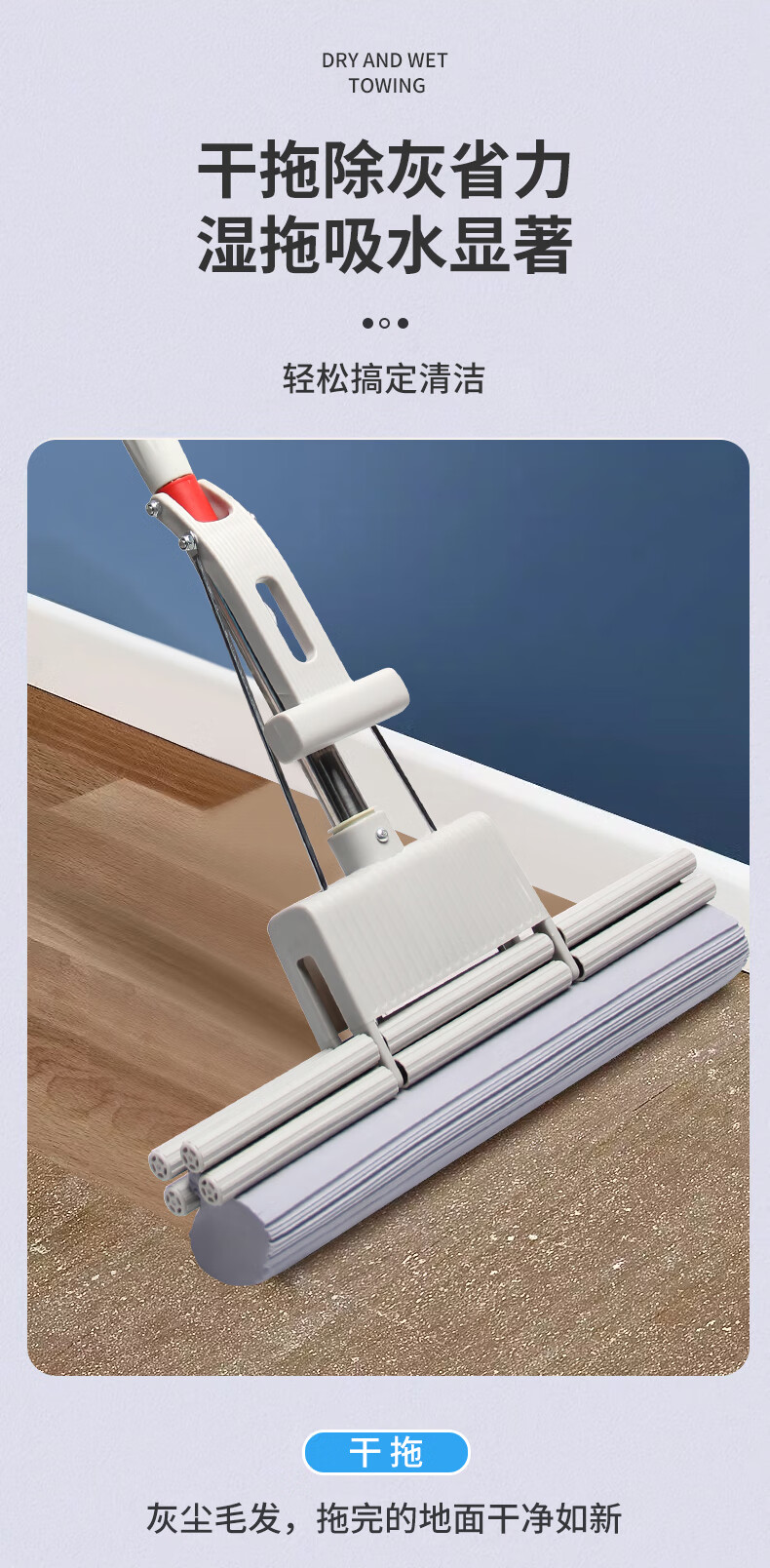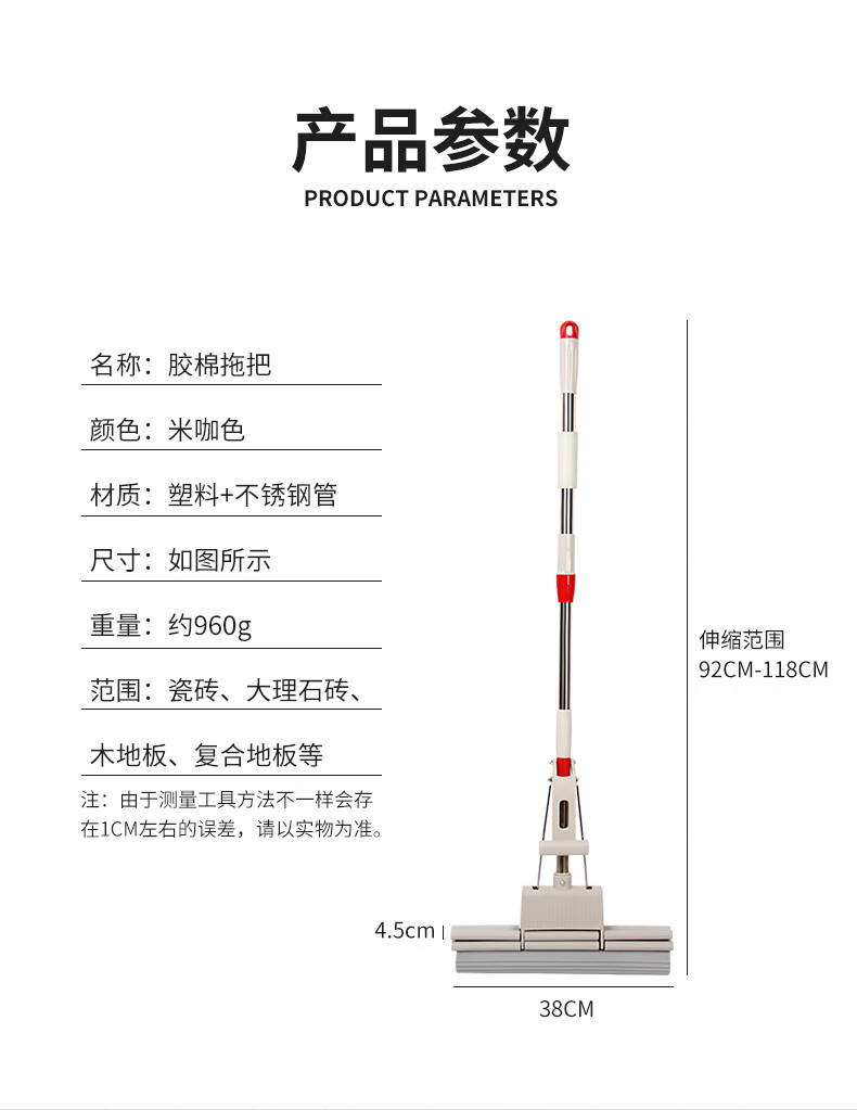 兰诗(LAUTEE) 胶棉拖把 免手洗 38CM LE1005